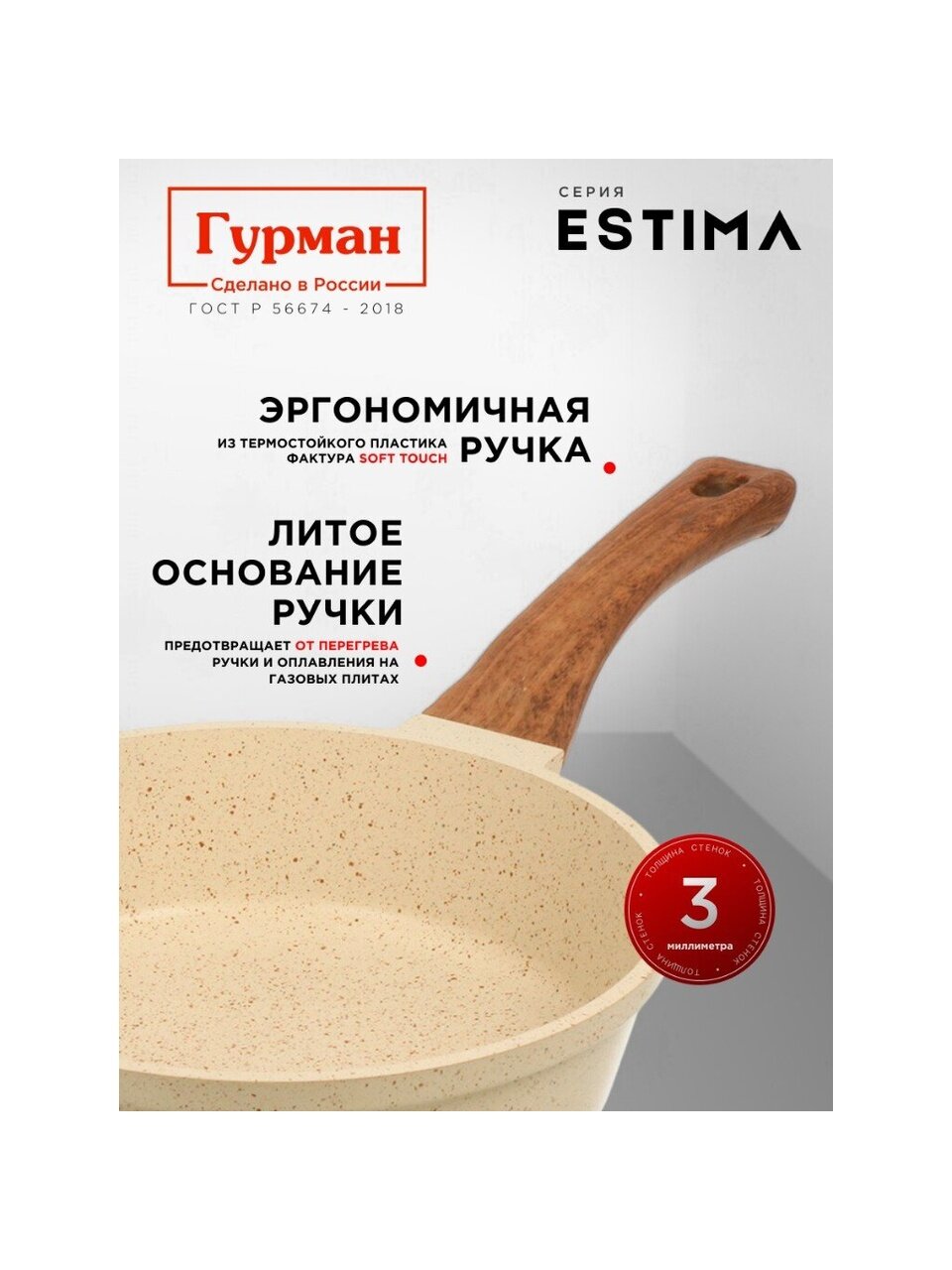 Оформите заказ прямо сейчас — получите оригинальную сковороду Гурман Estima с гарантией 36 месяцев и быстрой доставкой. Готовьте с удовольствием и уверенностью в качестве!
