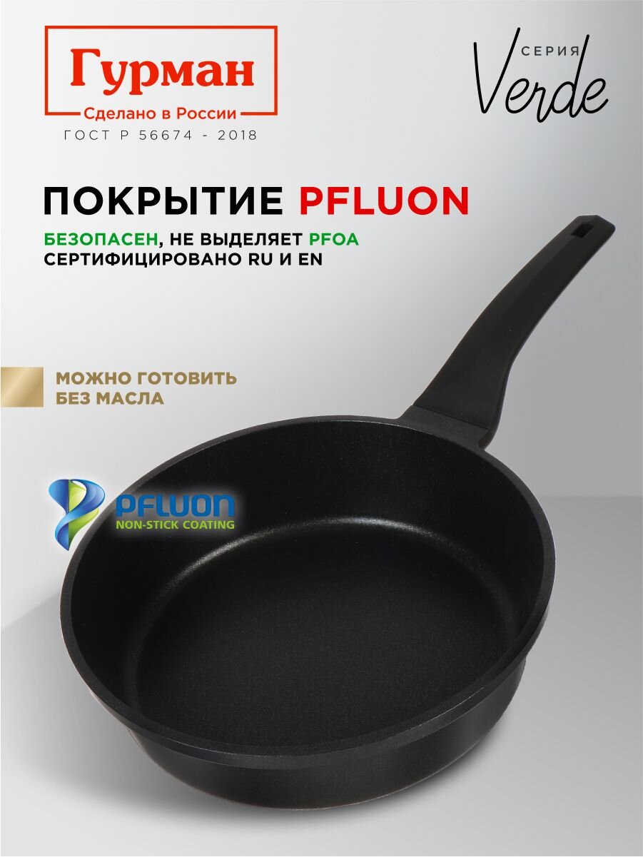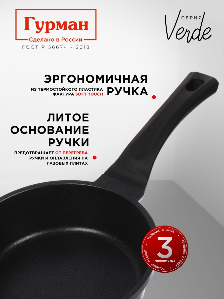 Для тех, кто заботится о простоте ухода, важно, что сковорода Гурман Verde подходит для мытья в посудомоечной машине. Если вы ищете, что лучше для подарка или обустройства дачной кухни — универсальная круглая форма и стильный черный цвет подойдут к любому интерьеру.
