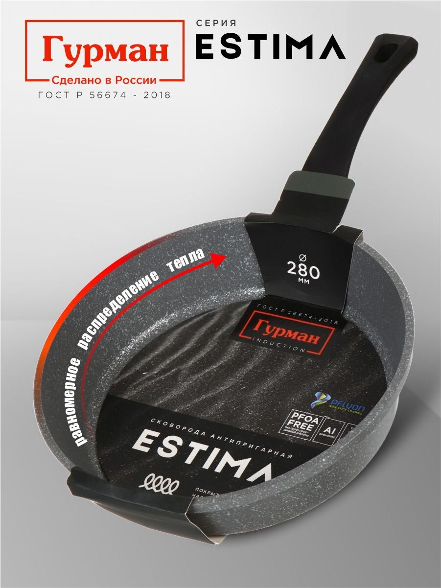 Вы можете приобрести «Сковорода литой алюминий, 28 см, антипригарное покрытие, Гурман, Estima, серая, индукция, ГМ2801 ЭЧИ» и другие товары в нашем интернет-магазине в Астрахани по низким ценам и с бесплатным самовывозом.