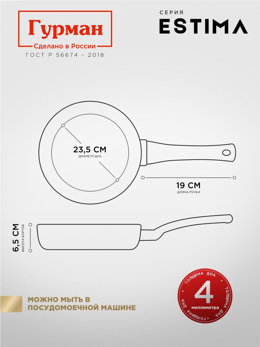 Сковорода Гурман Estima диаметром 28 см — это современное решение для тех, кто ищет антипригарную сковороду для индукции или универсальную посуду для всех типов плит. Благодаря литому алюминию и гранитному покрытию, еда готовится быстро и равномерно, не пригорает и сохраняет вкус. Часто спрашивают: "Как выбрать сковороду для омлета или жарки мяса?" — ответ прост: глубокая форма, диаметр дна 23,5 см и высота борта 65 мм позволяют готовить блюда для всей семьи без разбрызгивания масла.