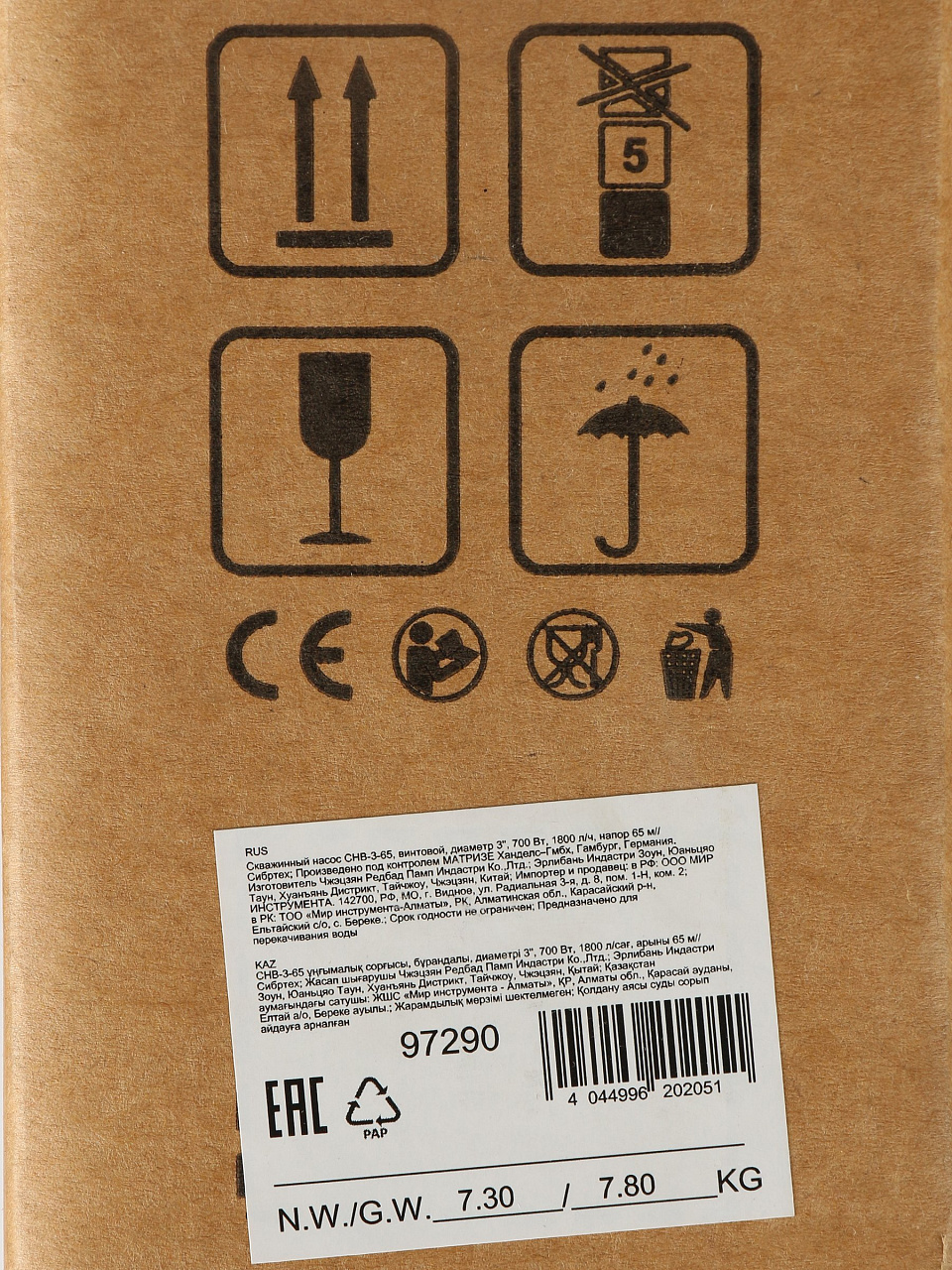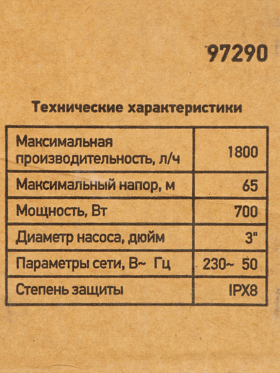 - Компактный диаметр 3" подходит для узких скважин, а мощность 700 Вт обеспечивает напор до 65 м