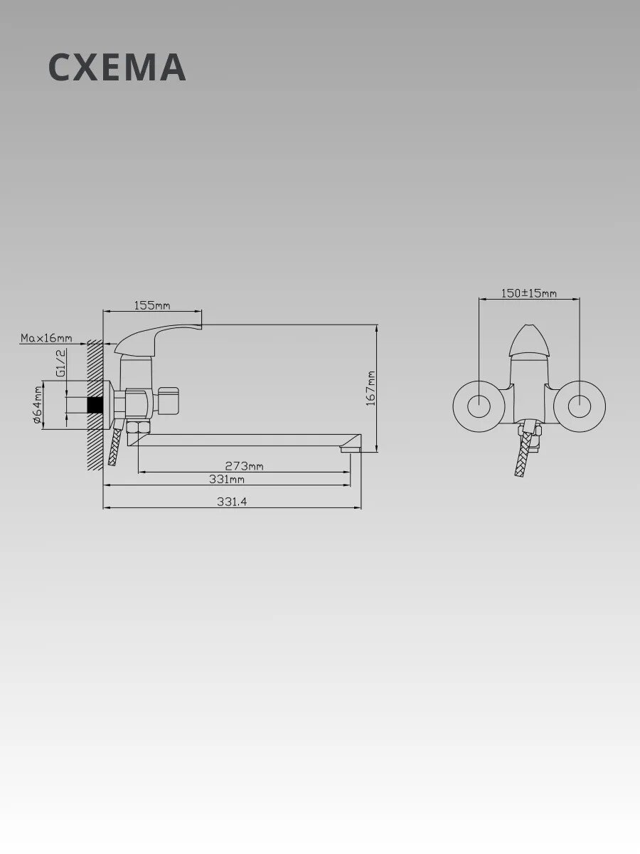 - Удобство монтажа: длинный поворотный излив 40 см, глянцевая поверхность, стандартное межосевое расстояние 150 мм