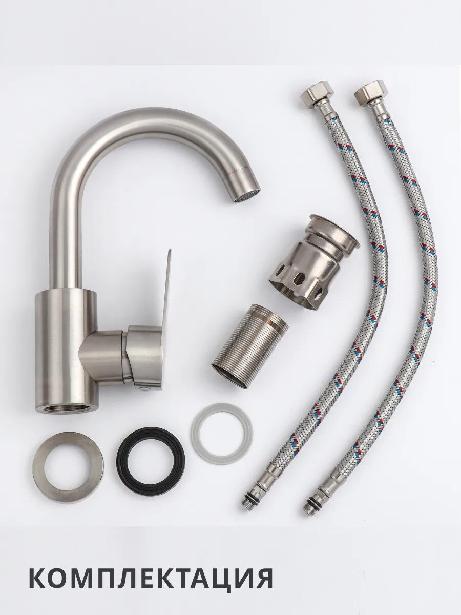 Смеситель для раковины Aqwin A10310S-2 — это современное решение для тех, кто ищет надежность и стиль в одном изделии. Благодаря корпусу из нержавеющей стали и матовой сатиновой поверхности, он устойчив к коррозии и сохраняет презентабельный вид при ежедневном использовании. Высокий поворотный излив (16,7 см) облегчает мытье рук и наполнение емкостей, а однорычажное управление позволяет быстро настроить температуру воды даже одной рукой.