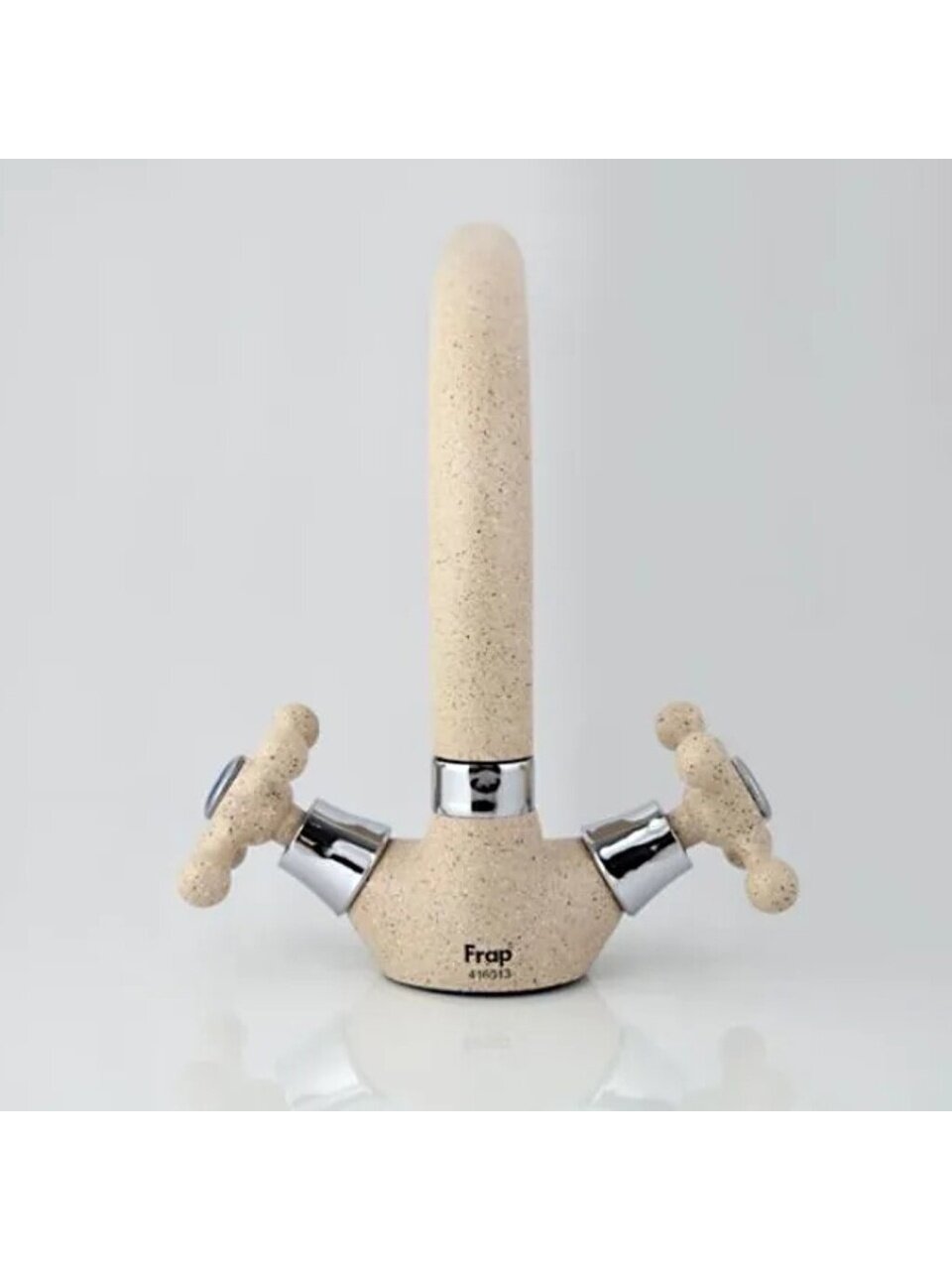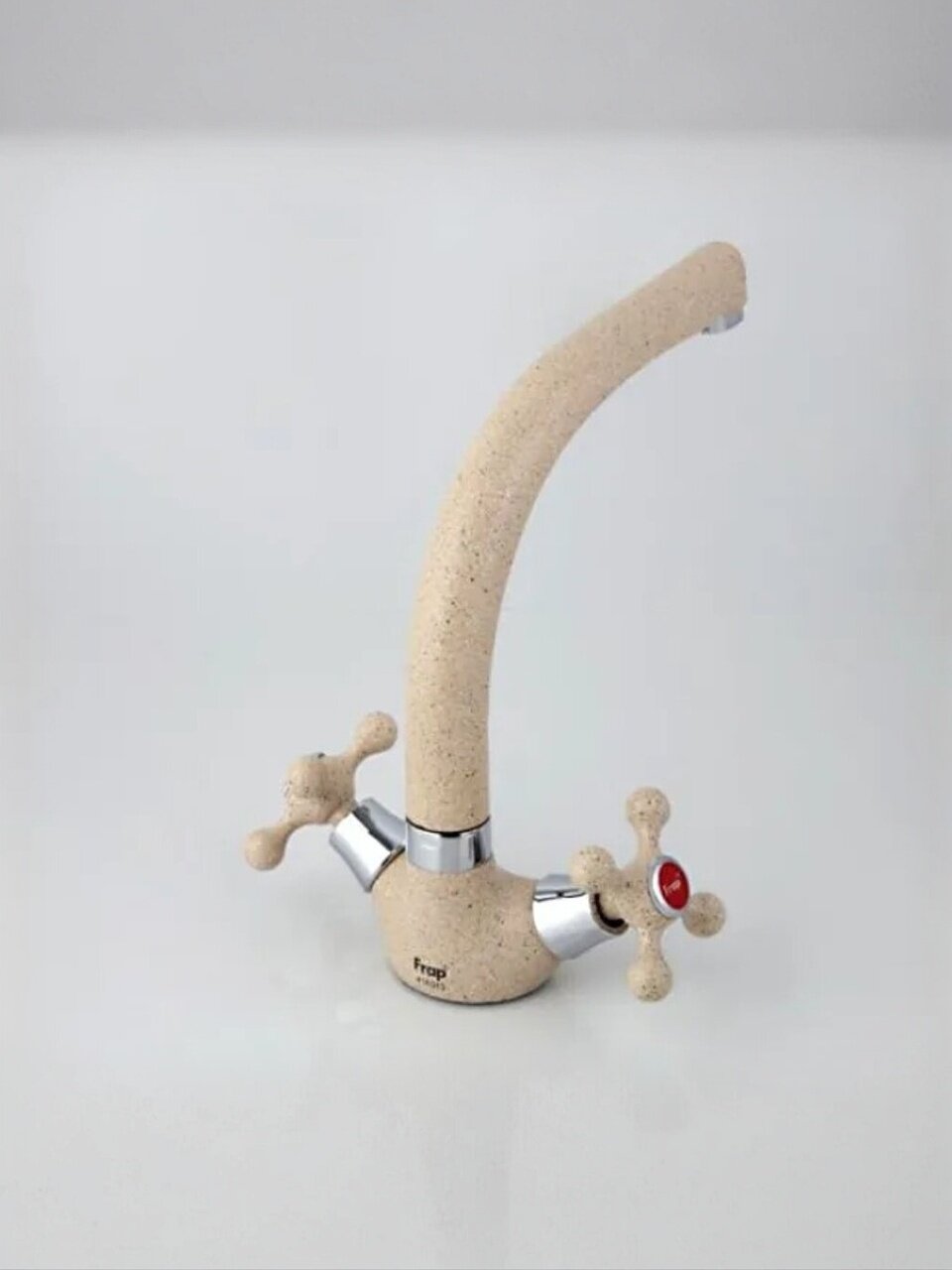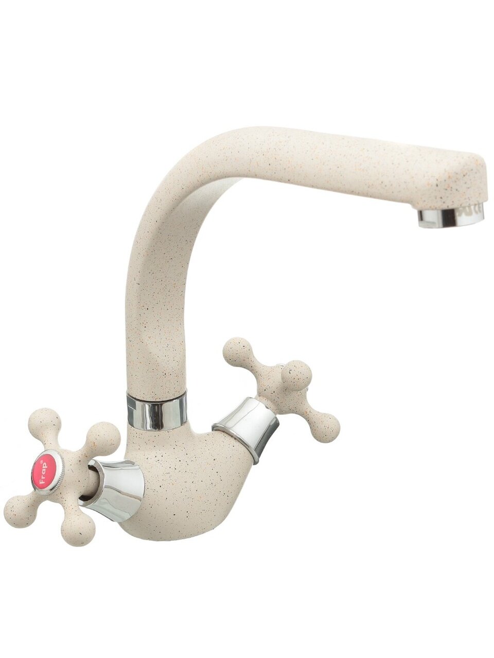Смеситель для кухни Frap F5408-10: стильный светло-бежевый дизайн, высокий излив 19,2 см, керамическая кран-букса — долговечность и комфорт по доступной цене.