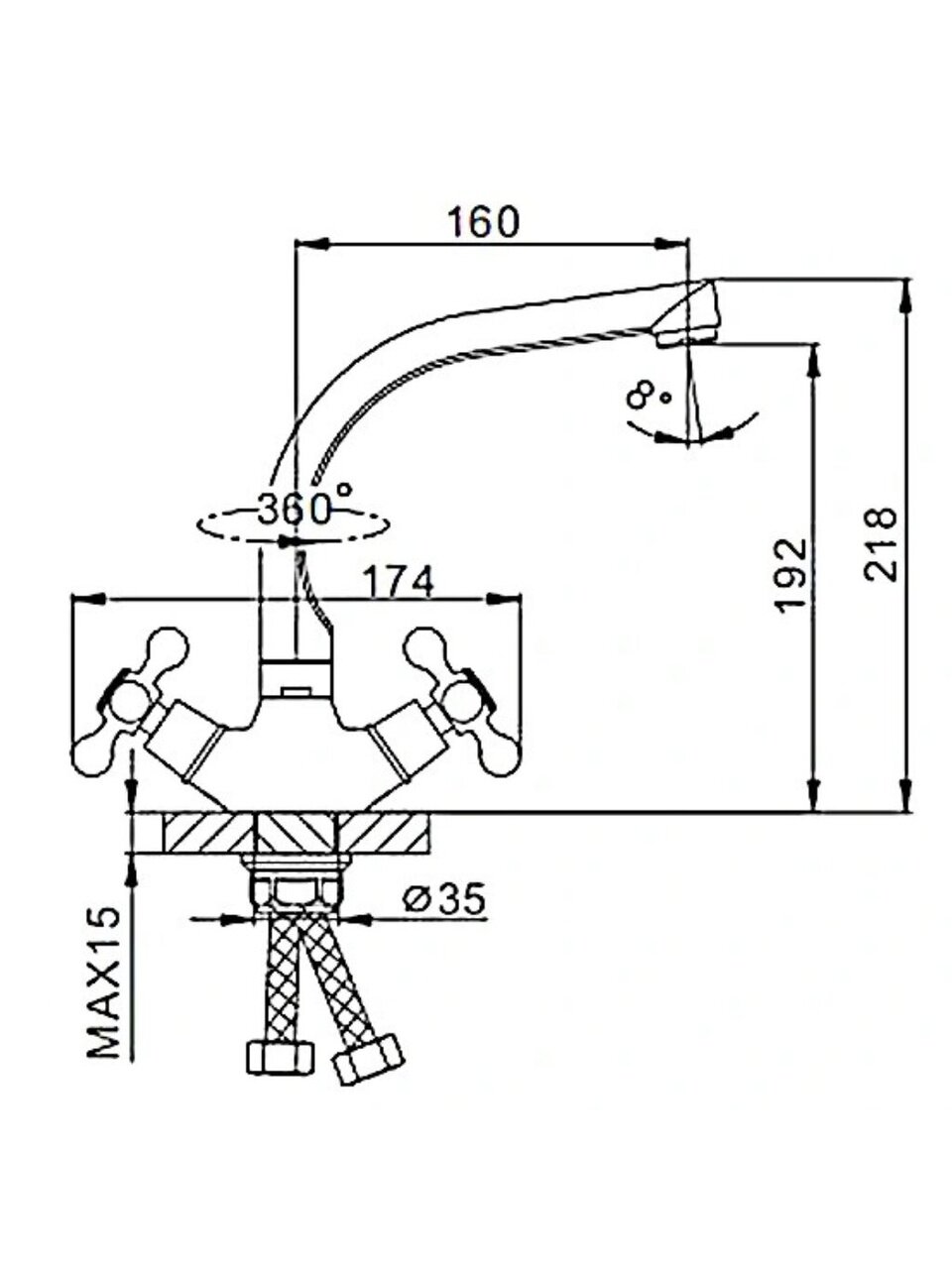 Высота излива — 19,2 см, длина — 16 см. Высокий поворотный излив позволяет удобно мыть крупные кастрюли и наполнять большие ёмкости, что особенно важно для кухни.