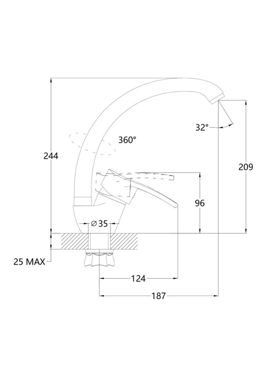 Для установки Stemix STM 314-011F-179 требуется одно отверстие диаметром 35 мм. Крепление осуществляется гайкой, подходит для большинства стандартных кухонных моек.