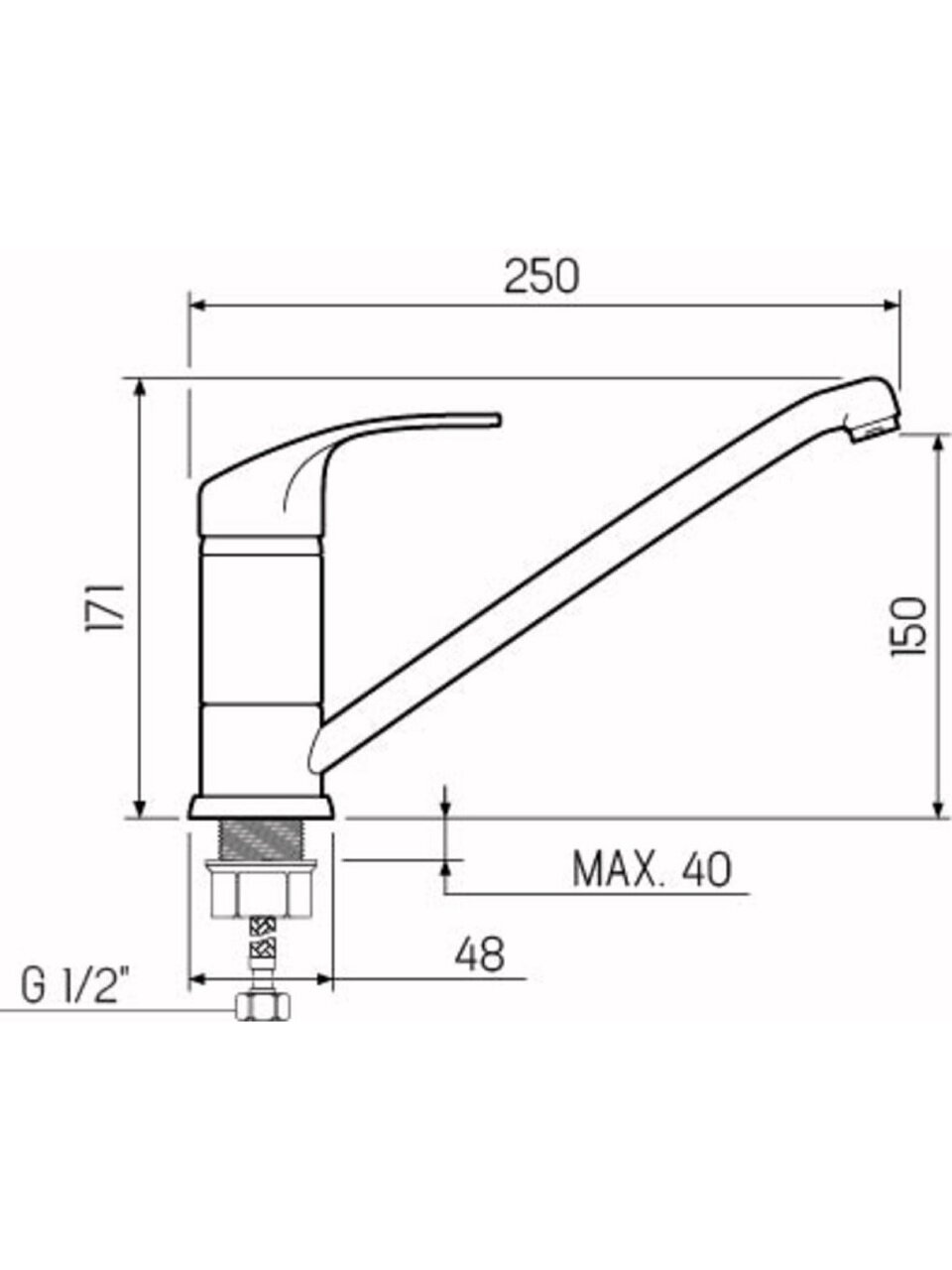 Высота излива — 14 см, длина — 25 см. Излив поворотный, что удобно для мытья посуды и наполнения емкостей разного размера.