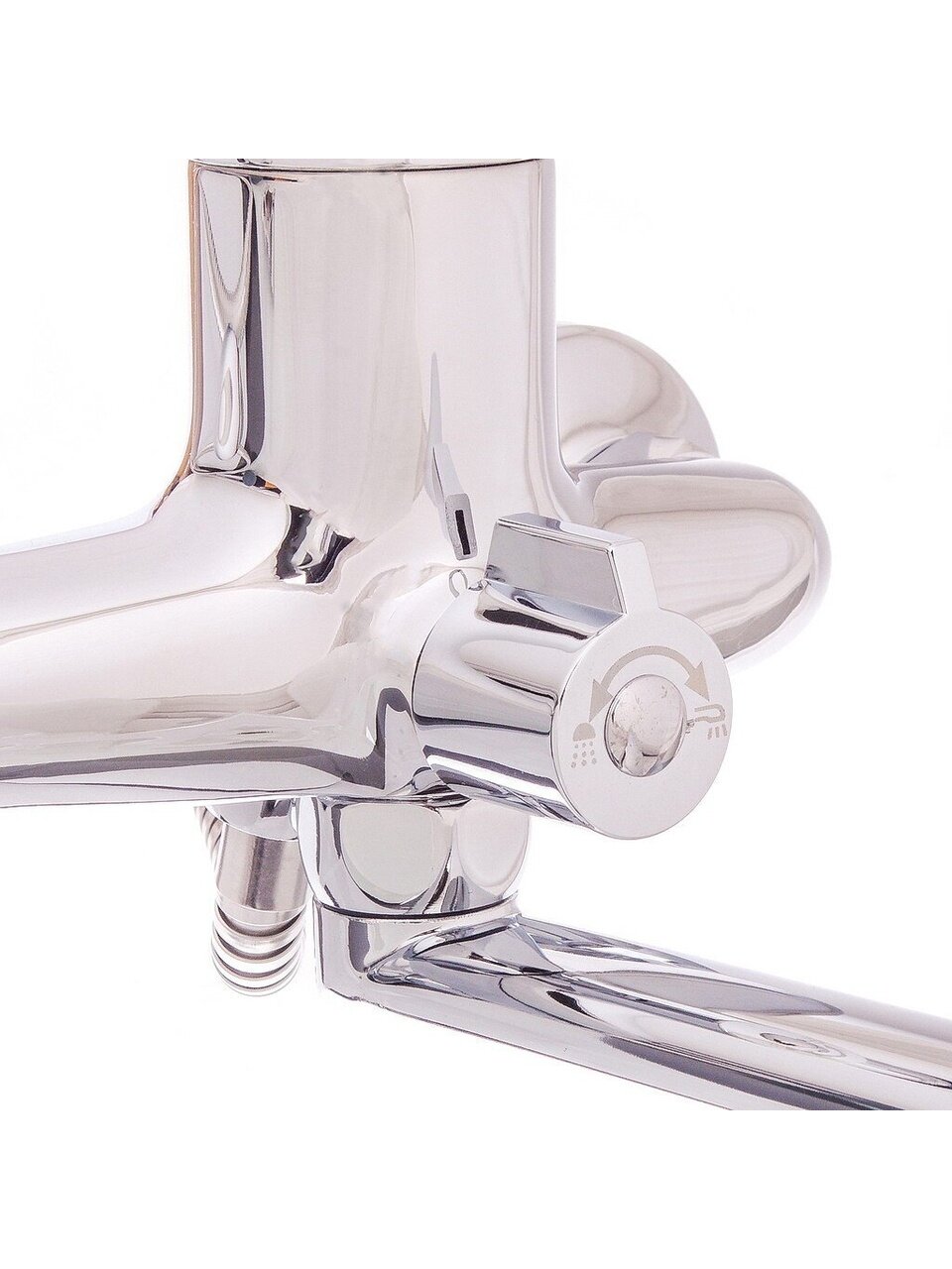 Модель оснащена однорычажным поворотным управлением, что позволяет легко регулировать температуру и напор воды одной рукой. Внутри установлен керамический картридж для плавного хода.