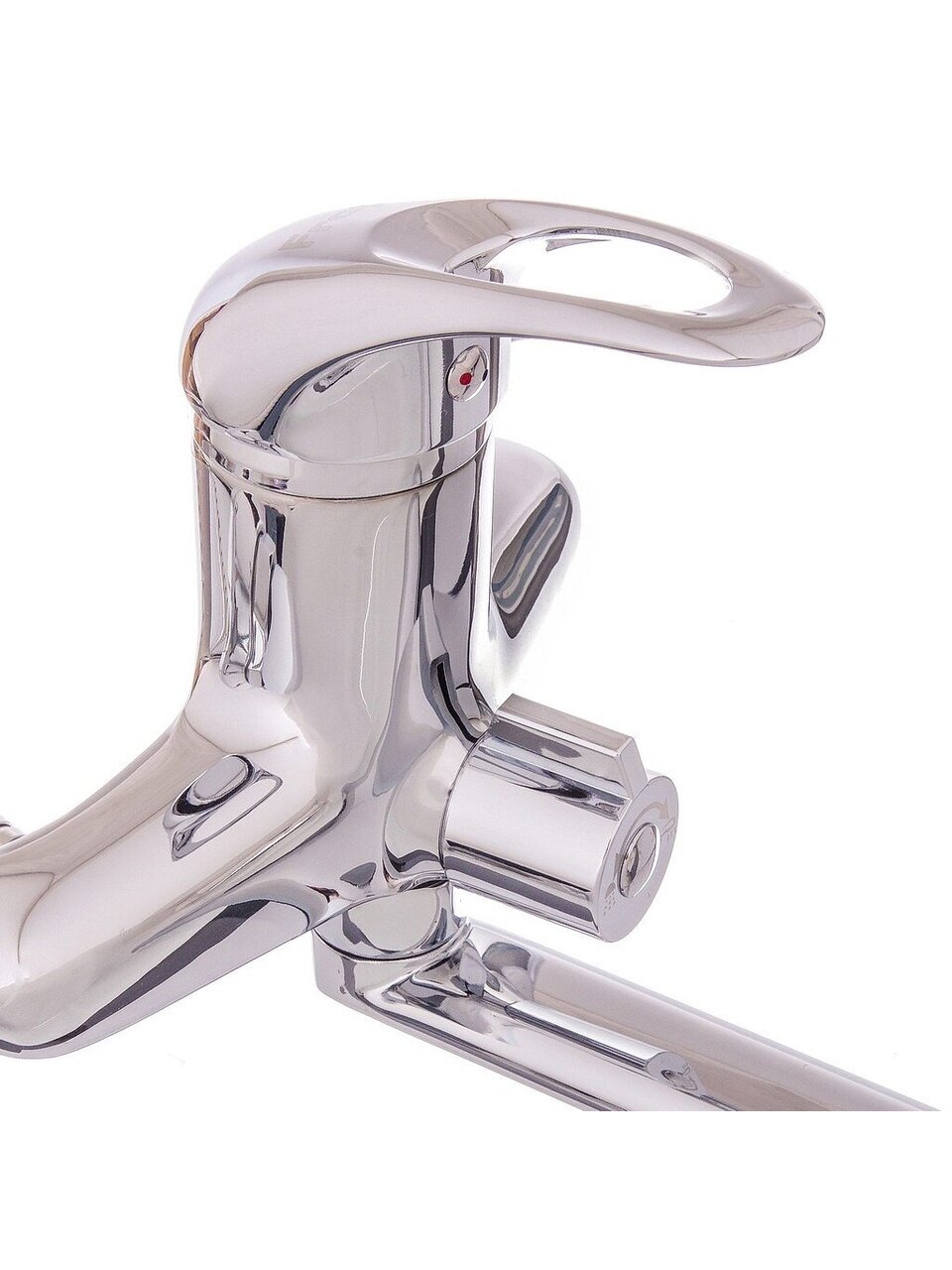 - Латунный корпус с хромированным глянцевым покрытием — износостойкость, отсутствие пластика, оптимальная длина излива 35 см
