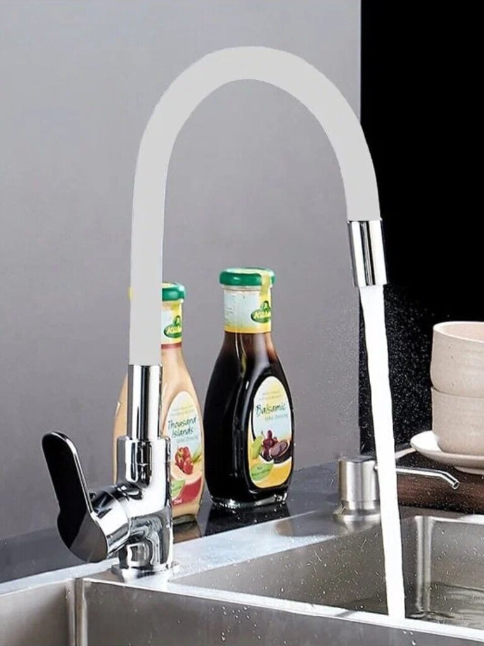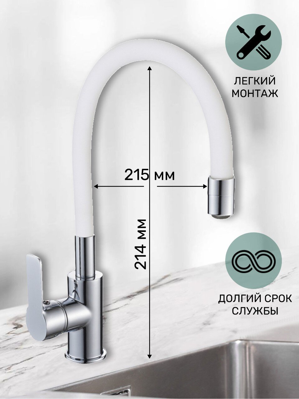 Смеситель для кухни, Gota Rocio, Santa-Barbara, гибкий излив, с картриджем, белый, 302531-GOTA - фото 1 от пользователя