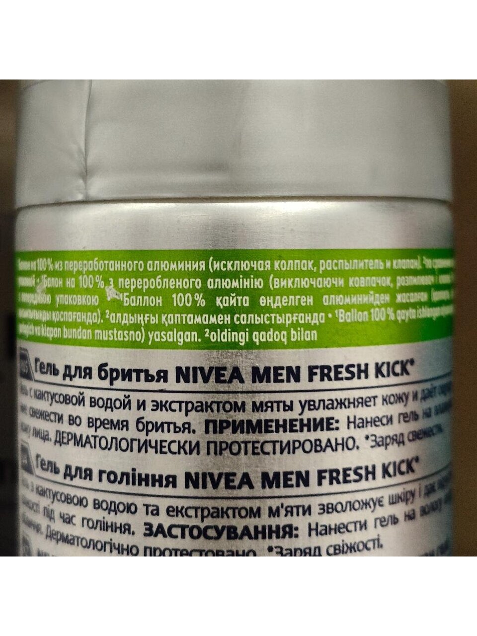 Гель для бритья Nivea Men Fresh Kick с кактусовой водой и экстрактом мяты увлажняет кожу и дает ощущение свежести во время бритья. Будь естественно свеж!