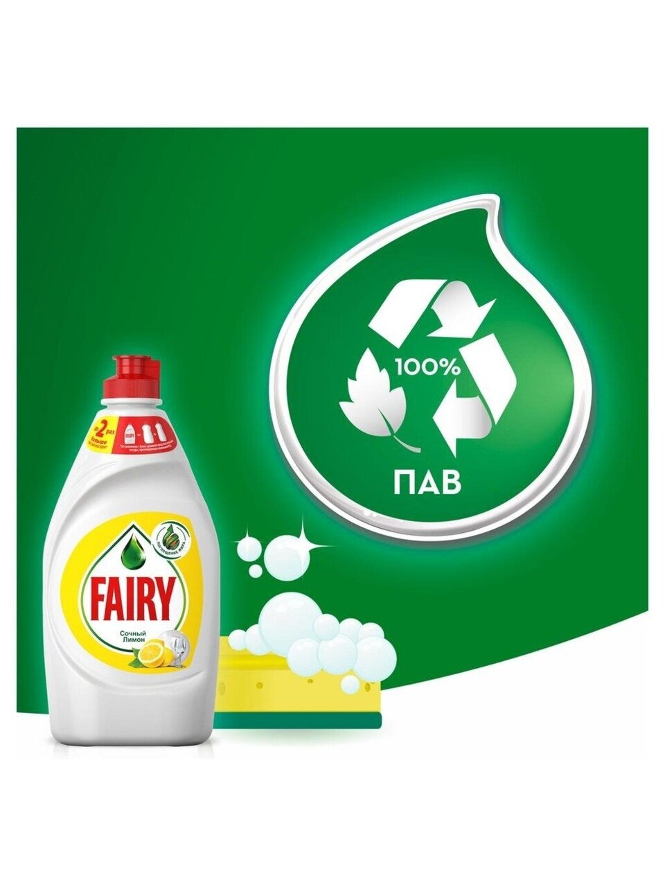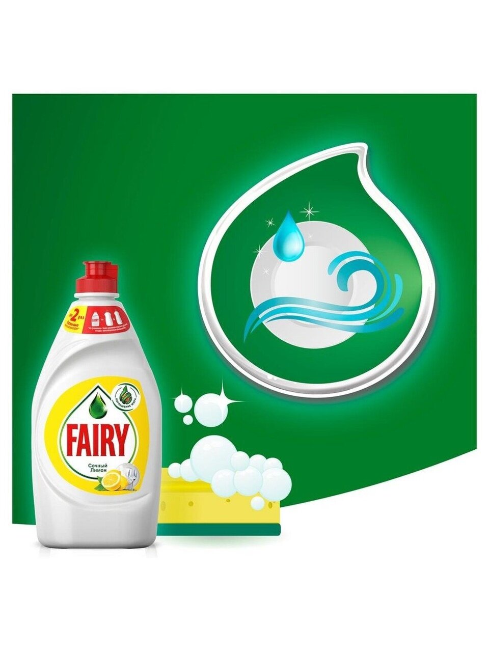 - Fairy "Сочный Лимон" отмывает до 2х раз больше посуды