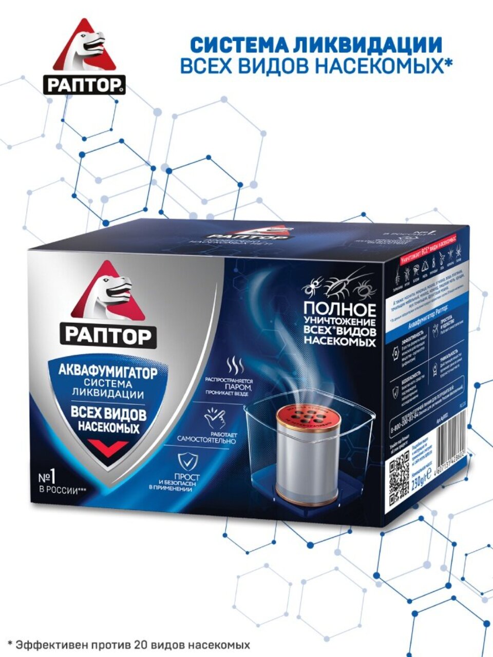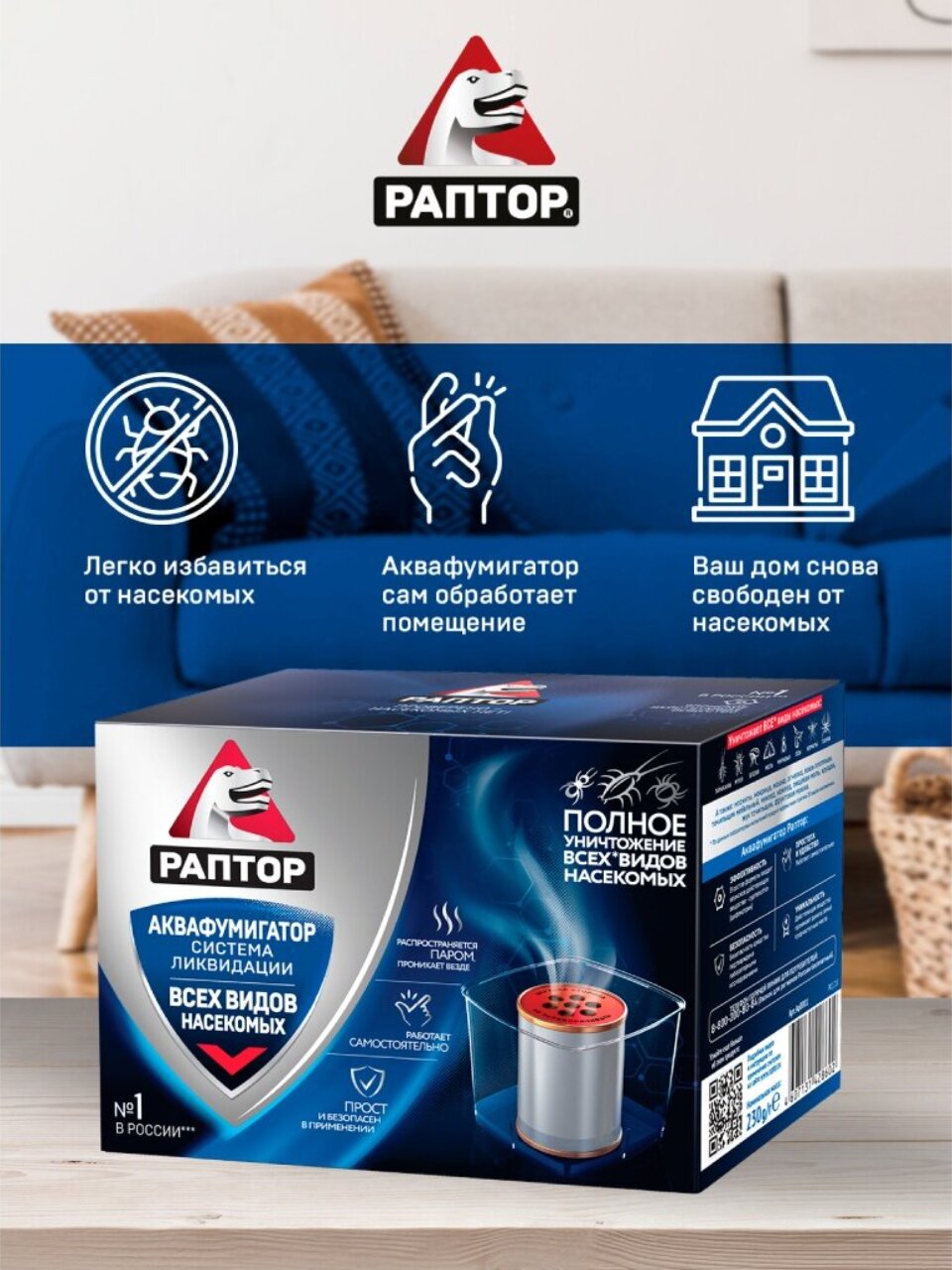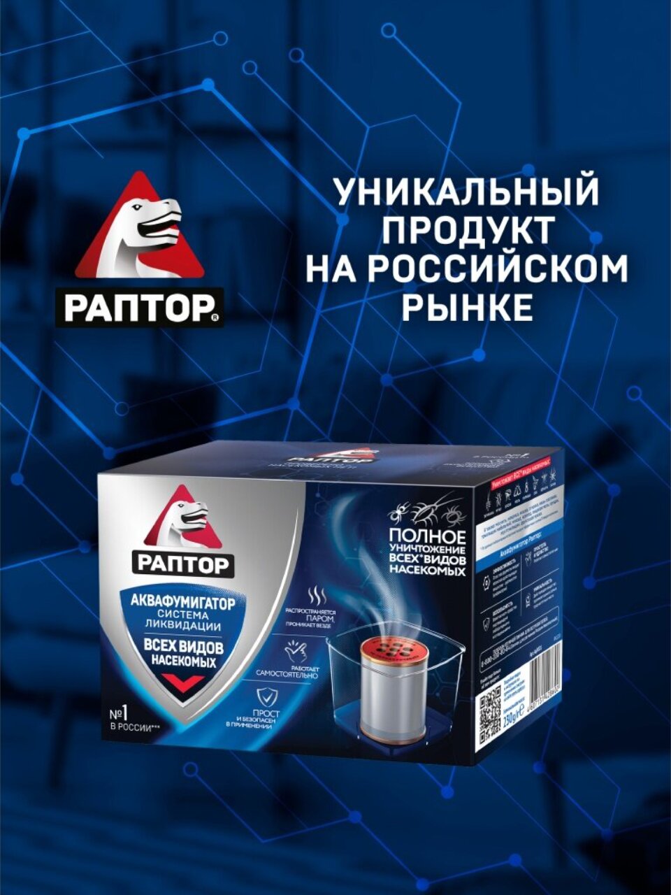 Аквафумигатор "Раптор" - эффективное средство для уничтожения различных насекомых в жилых и служебных помещениях разных типов, кроме лечебных и детских учреждений. Аквафумигатор "Раптор" прост и безопасен в применении. В основе препарата японское действующее вещество цифенотрин, доказавшее свою эффективность в отношении борьбы с насекомыми. В то же время - при соблюдении ряда мер безопасности - оно совершенно безвредно для человека и домашних животных. Для активации прибора потребуется немного воды, и прибор можно использовать. При контакте действующего вещества, заключенного в металлический контейнер, с водой, образуется пар. Распространяя вместе с собой действующее вещество, водяной пар проникнет в самые труднодоступные места (за плинтуса, в щели стен и паркета, за полки и в вентиляционные шахты), а значит, насекомые нигде не смогут скрыться.