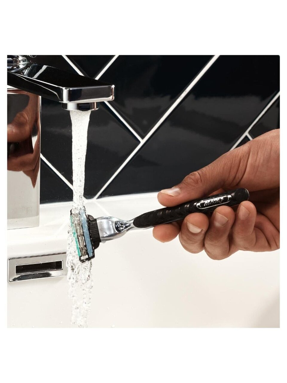 - Три лезвия прочнее, чем сталь, остаются острыми дольше, а улучшенная увлажняющая полоска шире и выделяет больше смазывающих веществ.