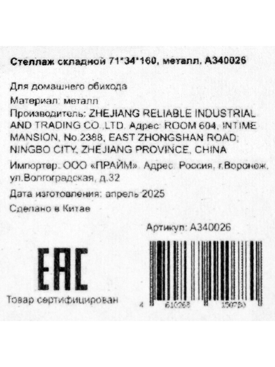Вы можете приобрести «Стеллаж универсальный, металл, 5 секций, 71х34х160 см, складной, A340026» и другие товары в нашем интернет-магазине в Иваново по низким ценам и с бесплатным самовывозом.