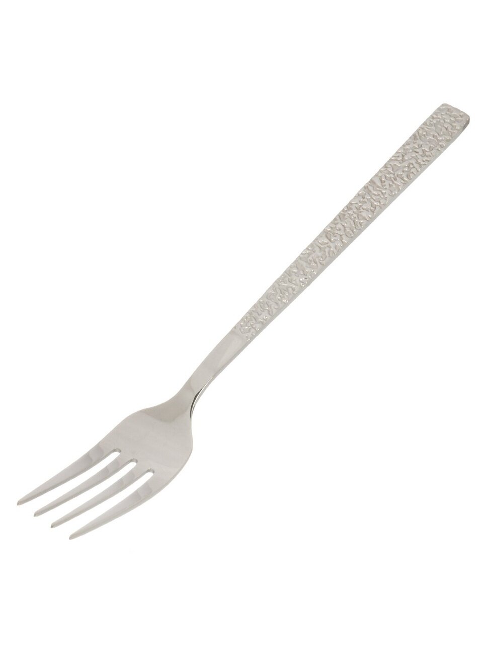 Длина вилки — 21 см, вес оптимален для комфортного использования одним человеком, цвет — серебристый, стиль — классический.