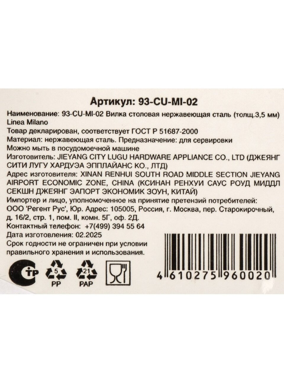 Вы можете приобрести «Вилка нержавеющая сталь, столовая, Regent Inox, Linea Milano, 93-CU-MI-02» и другие товары в нашем интернет-магазине в Иваново по низким ценам и с бесплатным самовывозом.