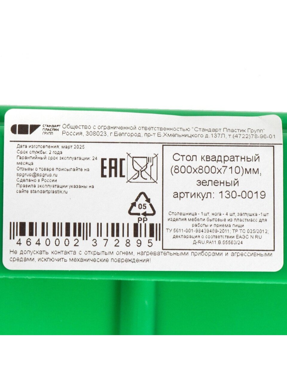 Вы можете приобрести «Стол пластик, Стандарт Пластик Групп, 80х80х71 см, квадратный, пластиковая столешница, зеленый» и другие товары в нашем интернет-магазине в Нижнем Новгороде по низким ценам и с бесплатным самовывозом.