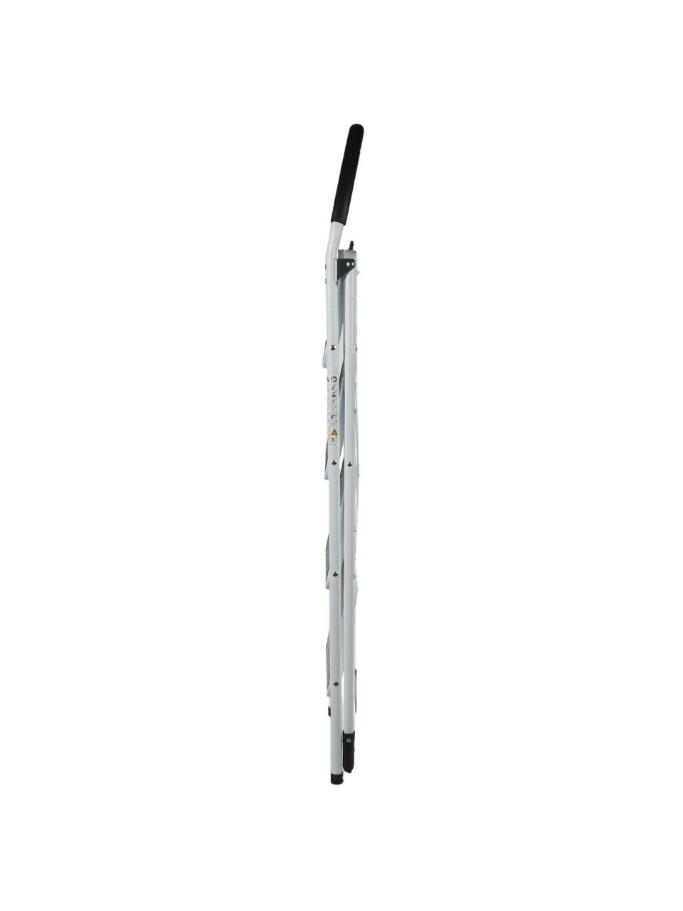 - Прочность и надежность: металлическая конструкция гарантирует долговечность и устойчивость к нагрузкам до 150 кг, что делает стремянку подходящей для различных пользователей и задач.