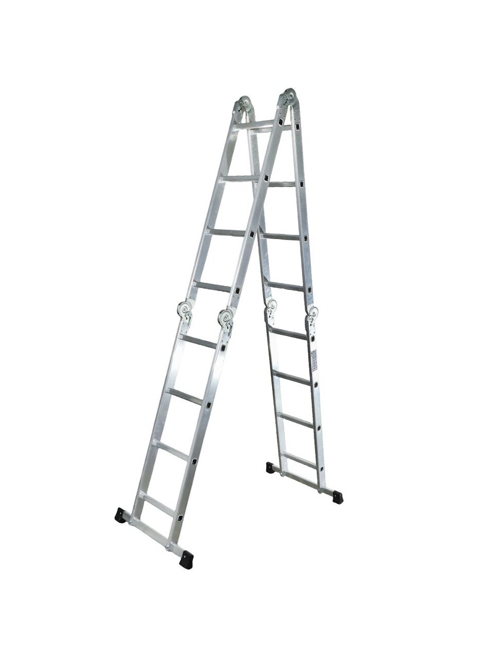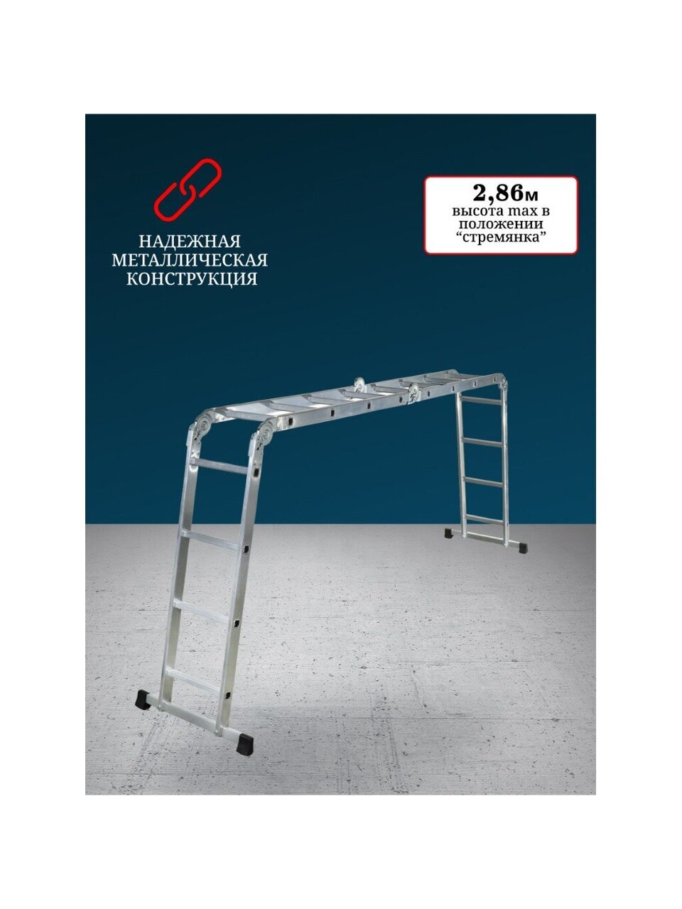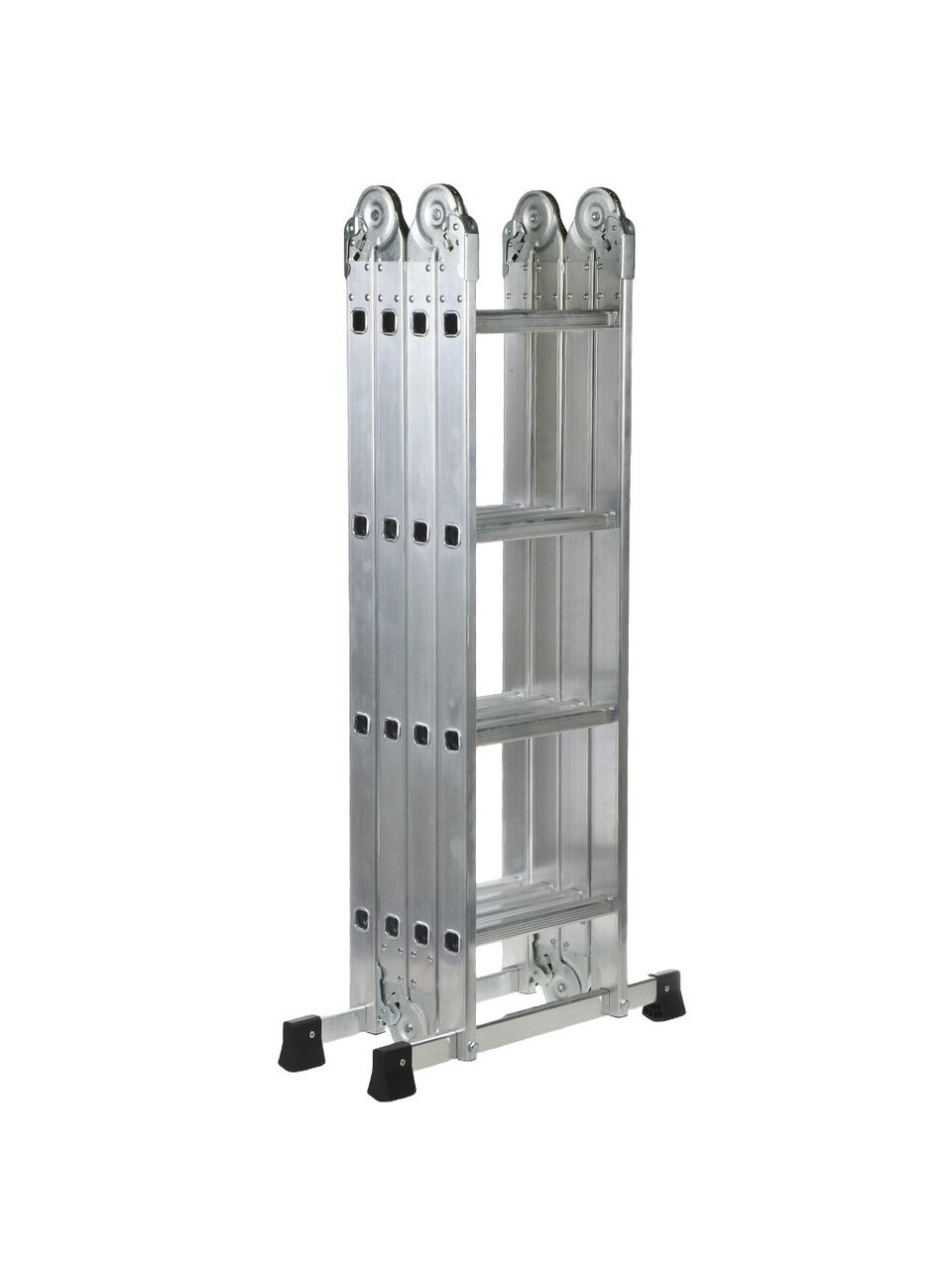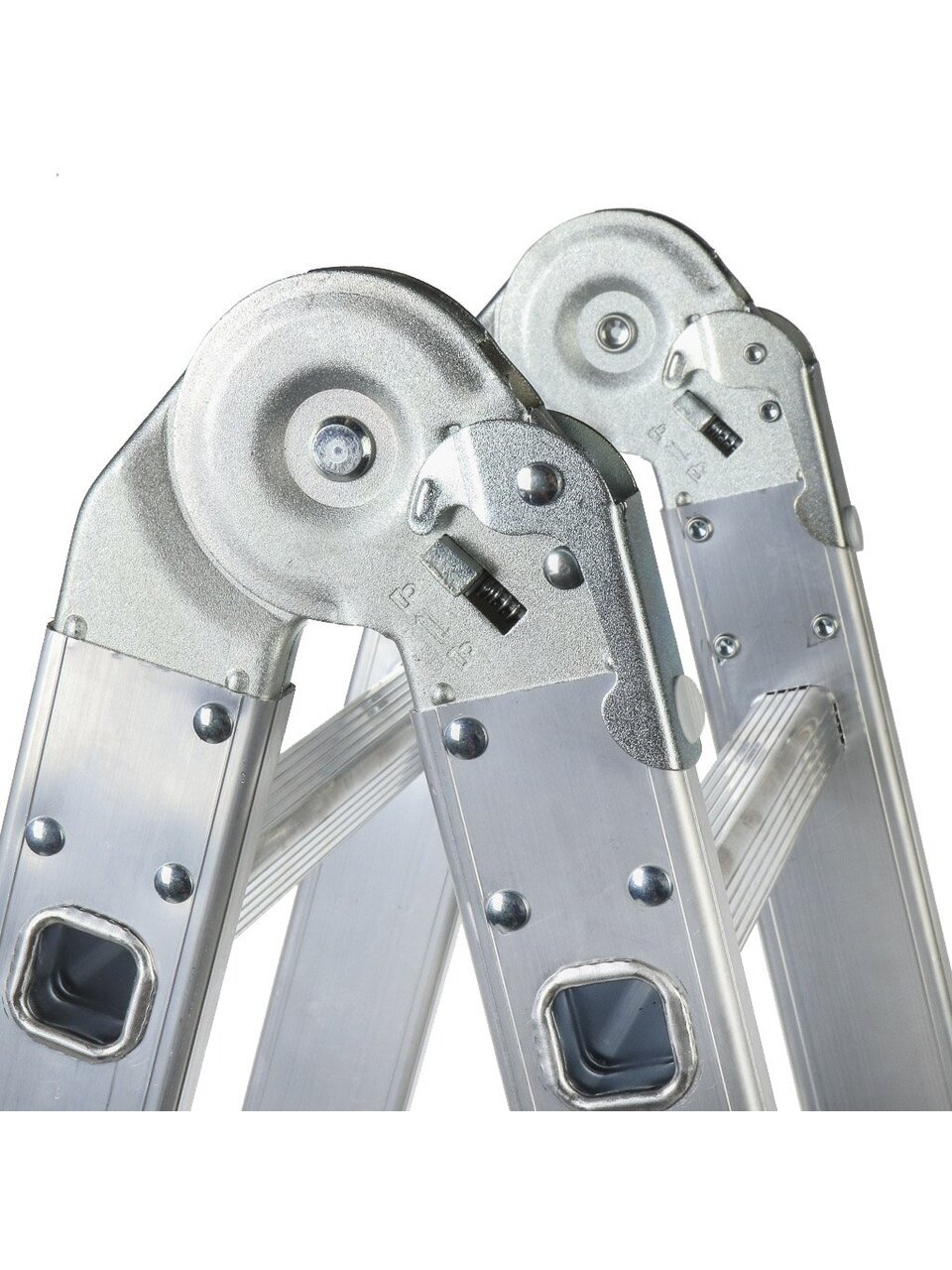 Представляем лестницу шарнирную 4 секции, 4 ступени, алюминий, 2.86 м, 150 кг - идеальный инструмент для профессионалов, стремящихся к эффективности и безопасности в работе. Эта лестница станет незаменимым помощником как для строителей, так и для мастеров, занимающихся ремонтом и обслуживанием. Благодаря своей многофункциональности и надежности, она обеспечит комфорт и уверенность в любых условиях.