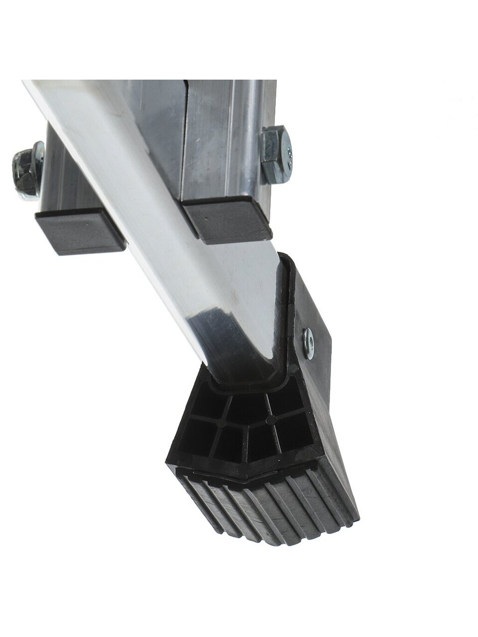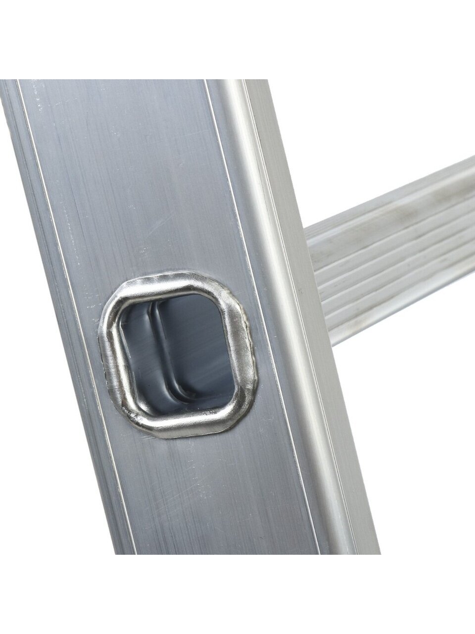 Лестница выполнена из высококачественного алюминия, что гарантирует ее долговечность и легкость. Длина в 2.86 метра позволяет достичь рабочей высоты до 4.86 метров, что делает ее идеальной для работ на высоте. Максимальная нагрузка в 150 кг обеспечивает безопасность даже при работе с тяжелыми инструментами или материалами. Вес в 10.5 кг делает ее удобной для транспортировки и хранения.