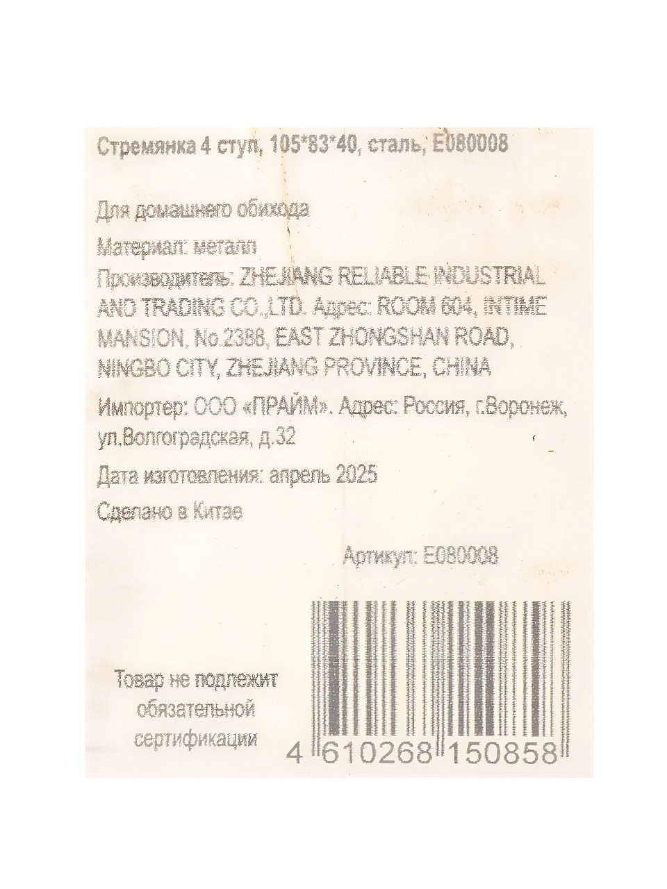 Стремянка 4 ступ, 105х83х40 см — выбор для тех, кто ценит комфорт, безопасность и функциональность в домашних делах. Благодаря складной конструкции и прочной стали, можно быть уверенным в надежности и долговечности изделия. Покупка стремянки позволяет быстро и безопасно справляться с любыми задачами на высоте, экономить время и силы, а также поддерживать идеальный порядок в доме или на даче. Выгода очевидна: удобство хранения, легкость перемещения и универсальность применения делают стремянку незаменимым инструментом для каждого хозяйственного человека.