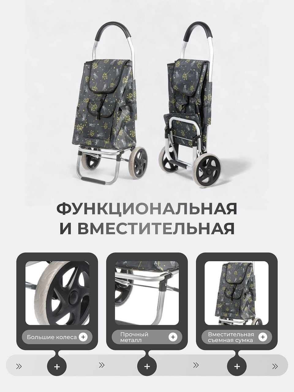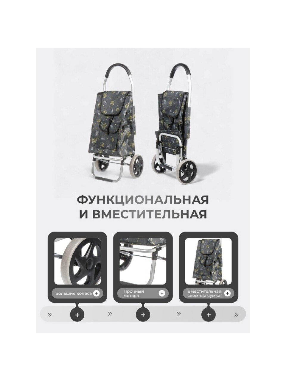 Складная тележка A150001 поможет навсегда забыть о тяжеловесности покупок, сложности распределения пакетов, дискомфорте перемещения с приобретенной впрок продукцией. Вес товаров примет на себя прочный каркас, избавив руки от тяжелой ноши.