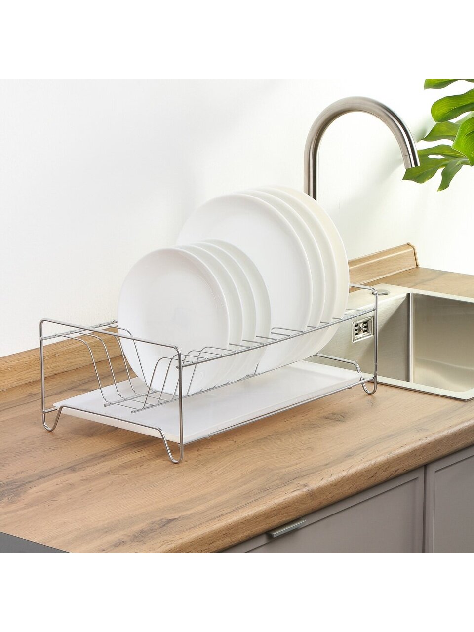Сушилка для посуды из металла с поддоном — универсальный аксессуар, который подходит для компактных кухонь и загородных домов. Благодаря хромированному покрытию она устойчива к влаге и легко очищается от загрязнений. Если вы ищете, какую сушилку выбрать для маленькой кухни, обратите внимание на эту модель: она не занимает много места, но вмещает необходимый набор тарелок, чашек и столовых приборов.