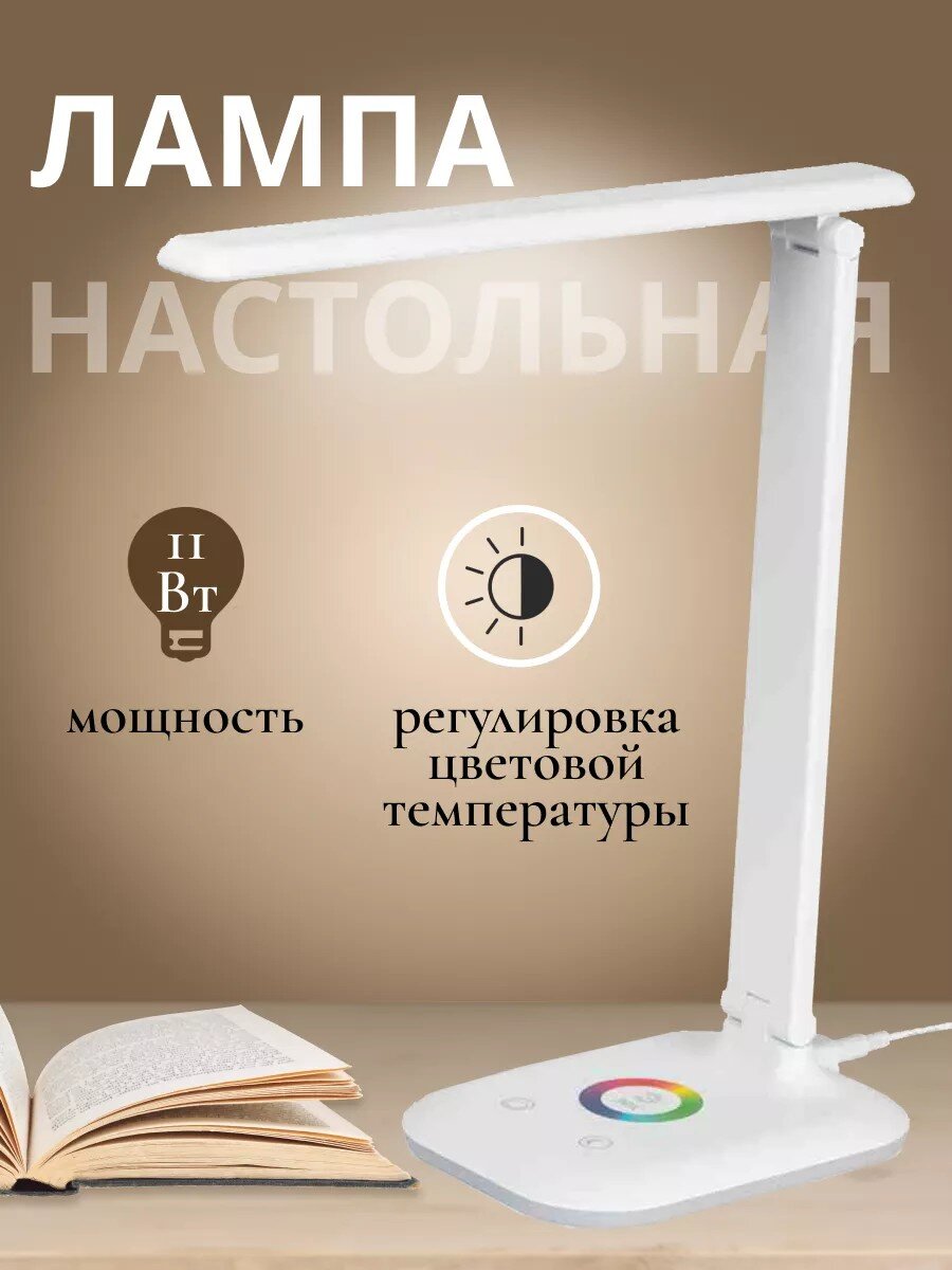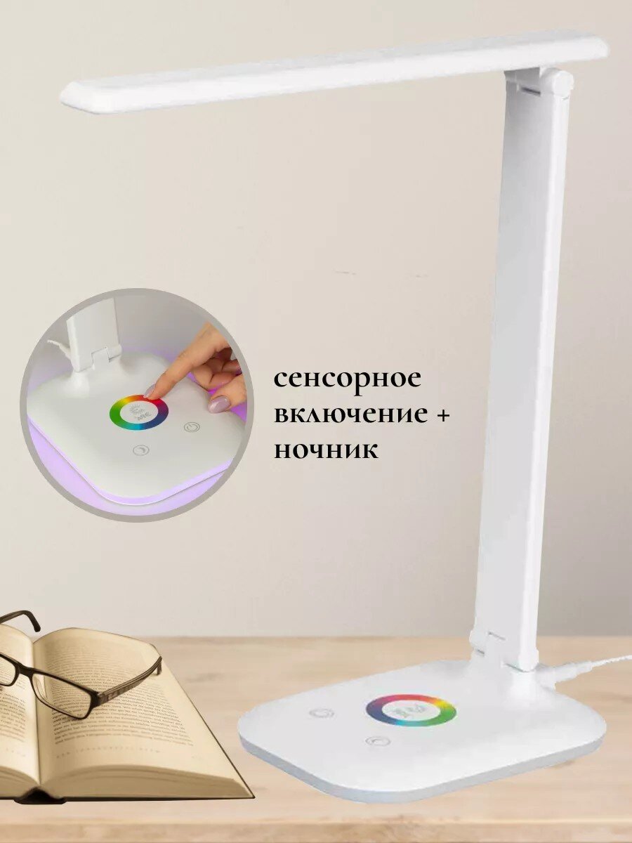 Настольный светильник ЭРА оснащен сенсорным управлением, возможностью выбора цветовой температуры и плавным диммером для регулировки яркости. В основание светильника встроен светодионый ночник с независимым выключателем и выбором режима работы.