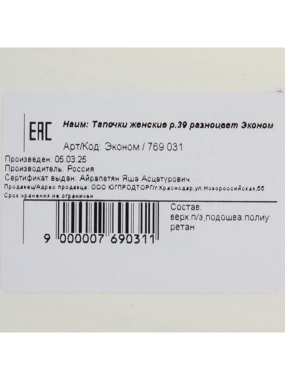 Вы можете приобрести «Тапки для женщин, текстиль, в ассортименте, р. 39, открытые, Эконом» и другие товары в нашем интернет-магазине в Астрахани по низким ценам и с бесплатным самовывозом.