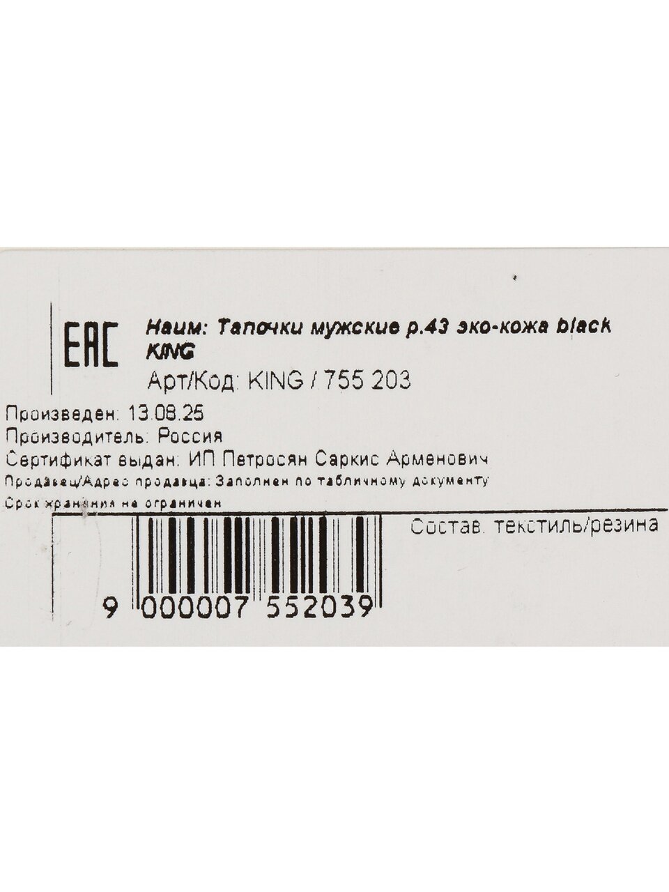 Вы можете приобрести «Тапки для мужчин, эко-кожа, черные, р. 43, открытые, King» и другие товары в нашем интернет-магазине в Старом Осколе по низким ценам и с бесплатным самовывозом.