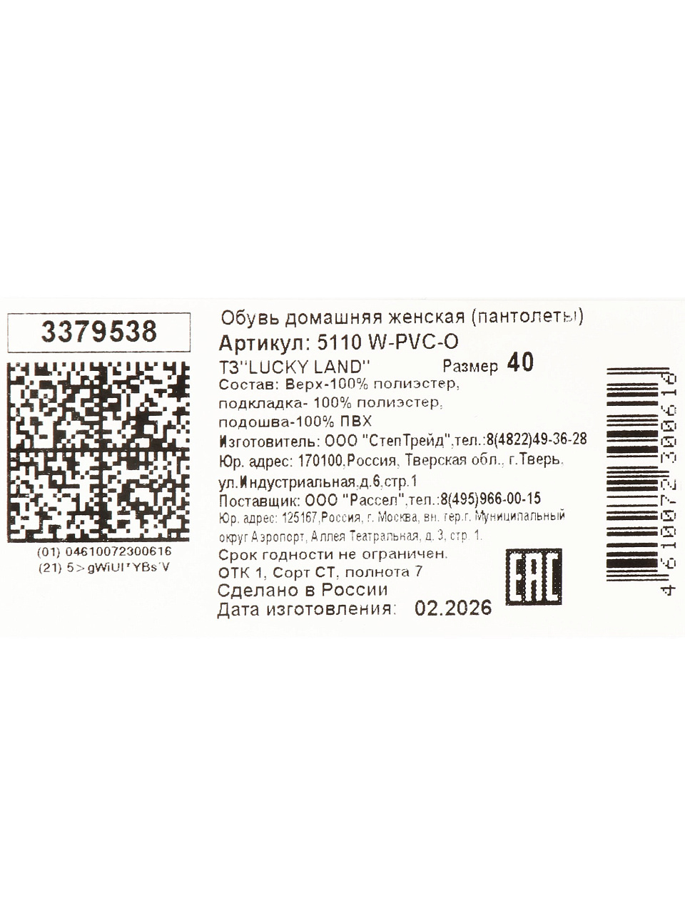 Закажите женские тапки Lucky Land 5110 W-PVC-O — получите комфорт и долговечность с быстрой доставкой и гарантией качества. Успейте купить недорого тапки для дачи или дома прямо сейчас.