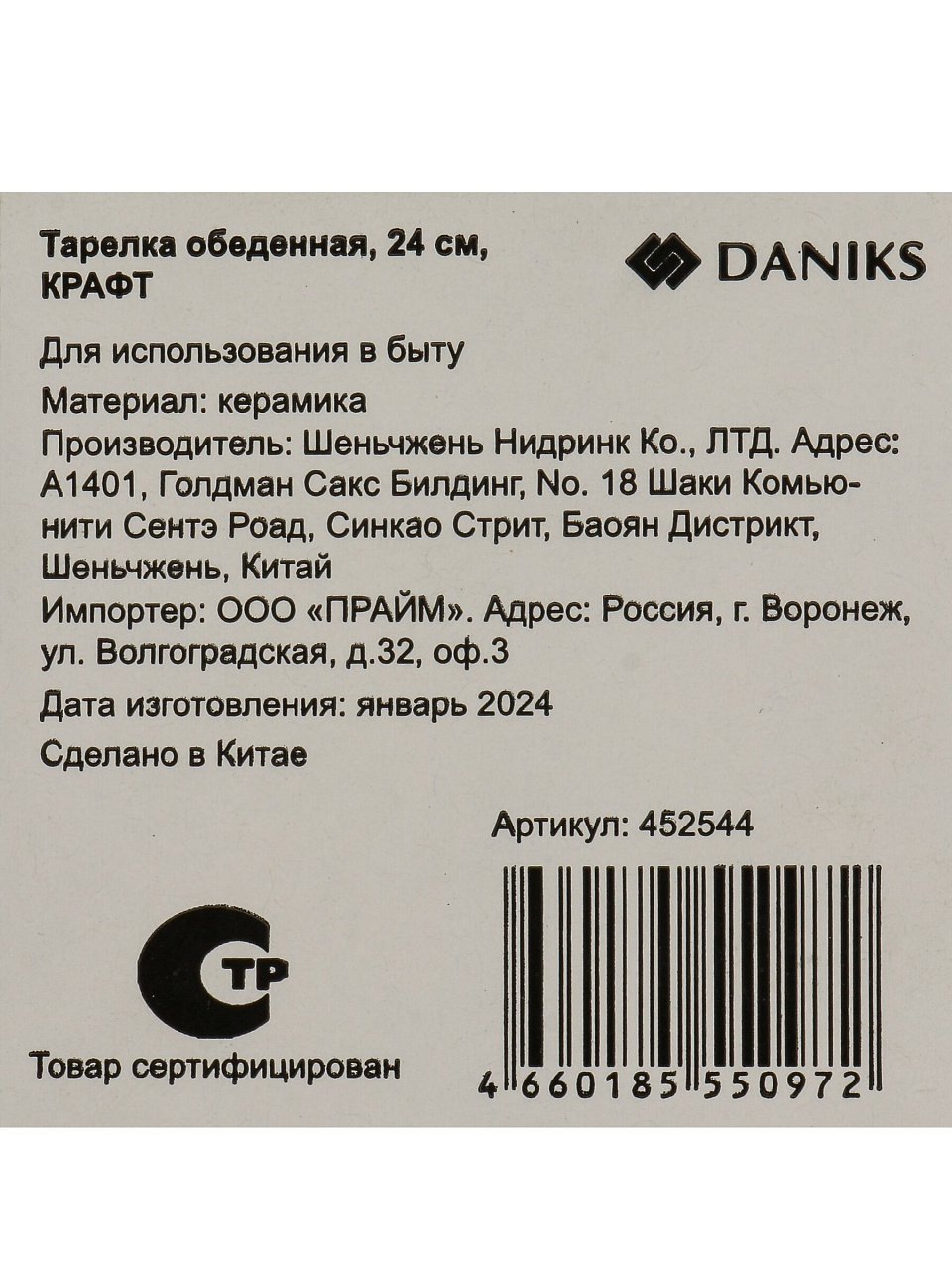 Тарелка обеденная Daniks Крафт 24 см: стильная керамика для сервировки, подходит для СВЧ и посудомоечной машины. Идеальный выбор для дома и дачи.