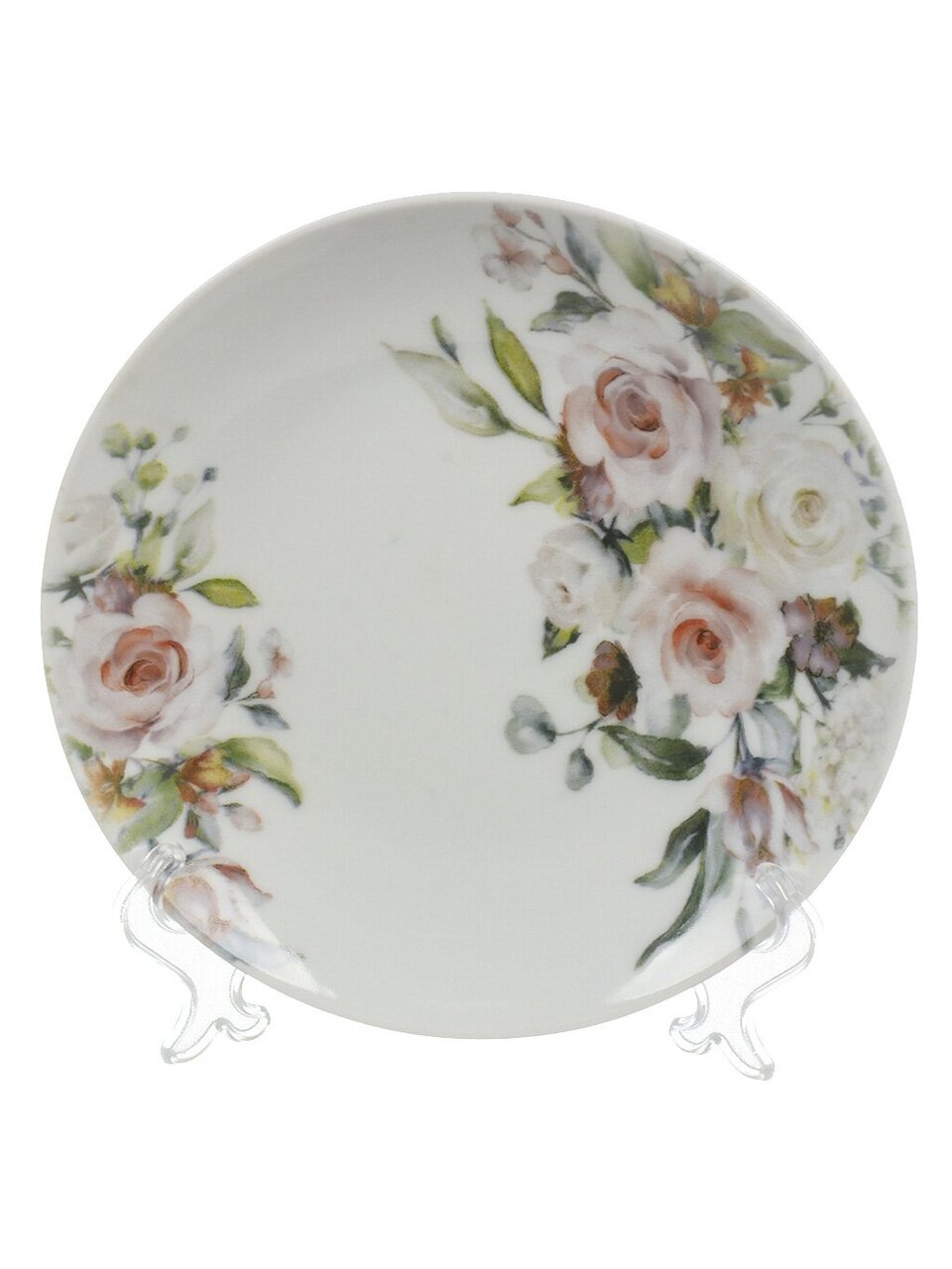 Фарфор устойчив к сколам, не впитывает запахи и легко моется. Универсальный размер и изысканный декор делают эту тарелку отличным выбором для сервировки на даче и презентабельным подарком.