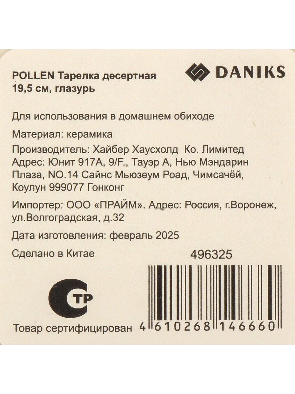 Вы можете приобрести «Тарелка десертная, керамика, 19.5 см, глазурь, круглая, Pollen, Daniks» и другие товары в нашем интернет-магазине в Старом Осколе по низким ценам и с бесплатным самовывозом.