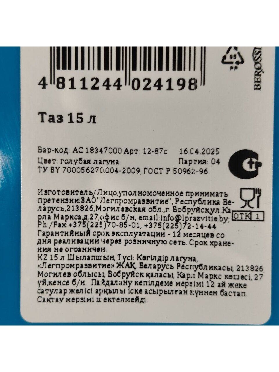 Вы можете приобрести «Таз пластик, 15 л, прямоугольный, с ручкой, голубая лагуна, Berossi, АС 18347000» и другие товары в нашем интернет-магазине в Казани по низким ценам и с бесплатным самовывозом.