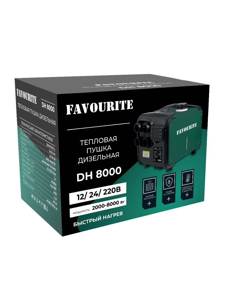 Дизельная тепловая пушка Favourite DH 8000 — 80 кВт для быстрого обогрева помещений до 30 м²: максимальная мощность, мобильность и защита от перегрева.
