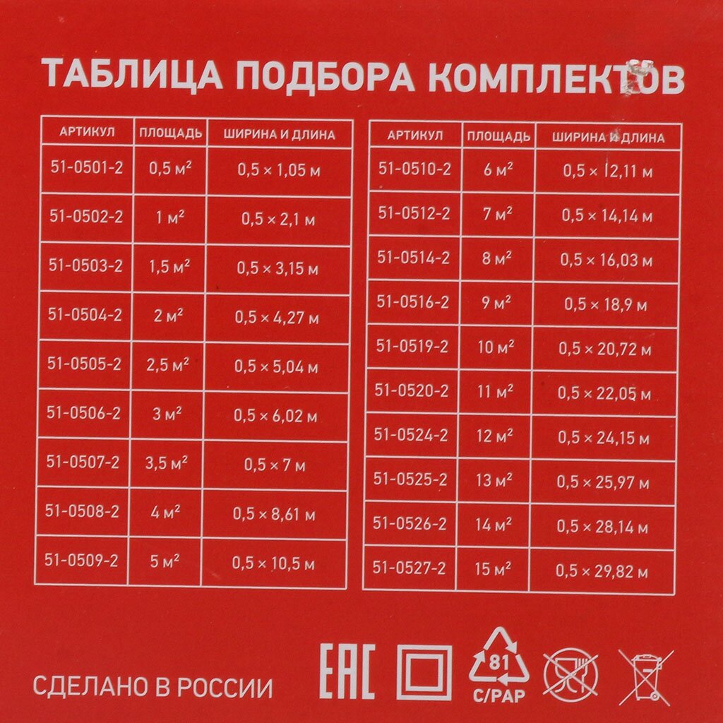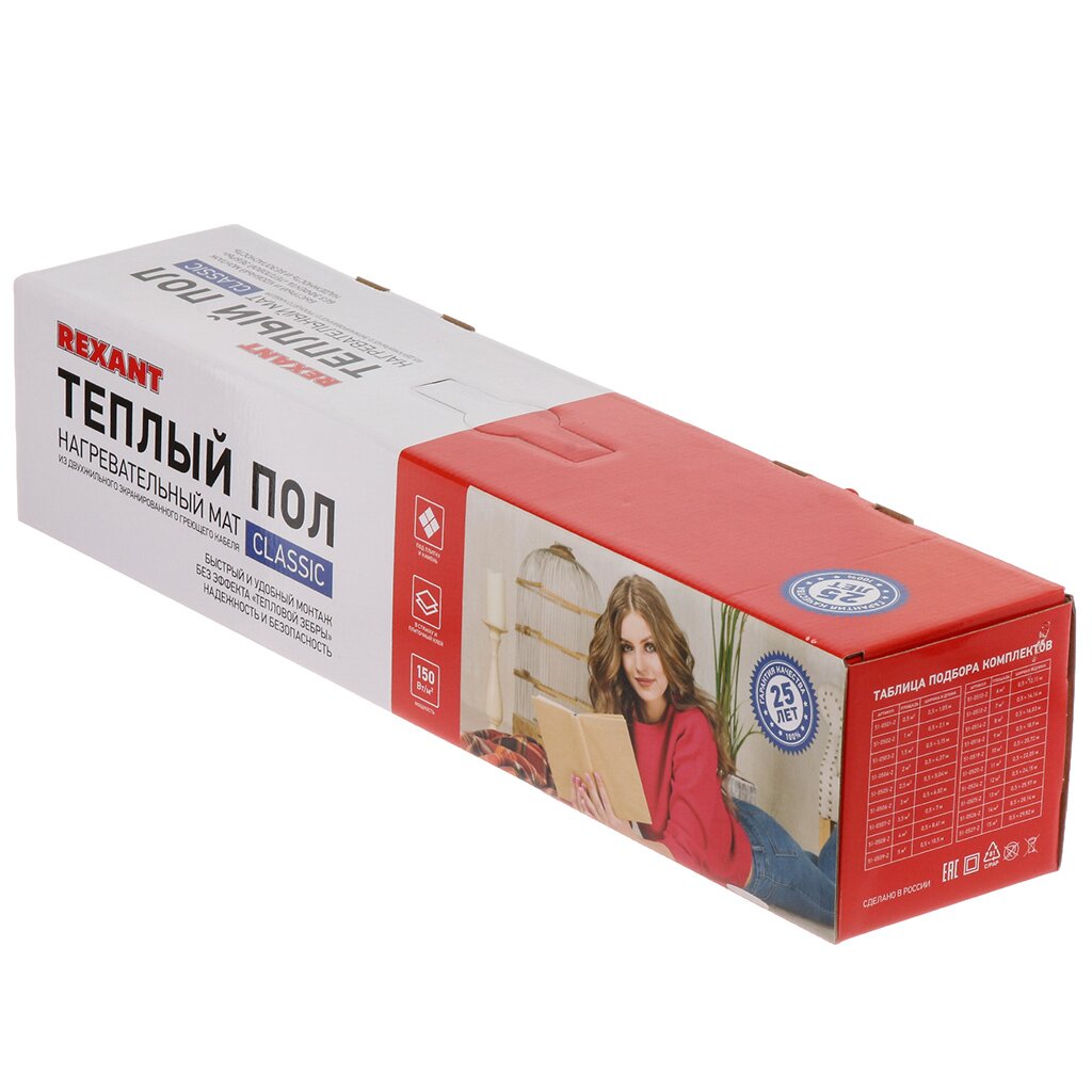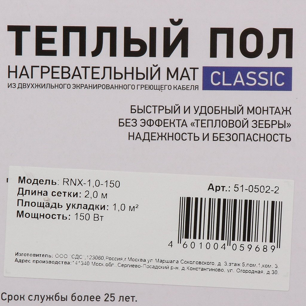 Теплый пол 1 м2, 150 Вт, 0.5х2 м, нагревательный мат двухжильный, с экраном, Classic RNX-1-150, Rexant