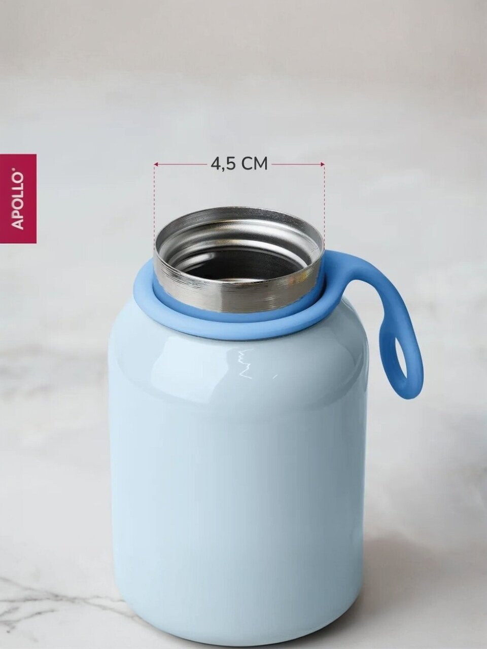 Как использовать термос Apollo Aquatico? Просто налейте любимый напиток, плотно закрутите крышку и берите с собой в школу, на работу или прогулку. В отличие от моделей с широким горлом, этот термос легче держать рукой, а силиконовое покрытие снижает риск выскальзывания.