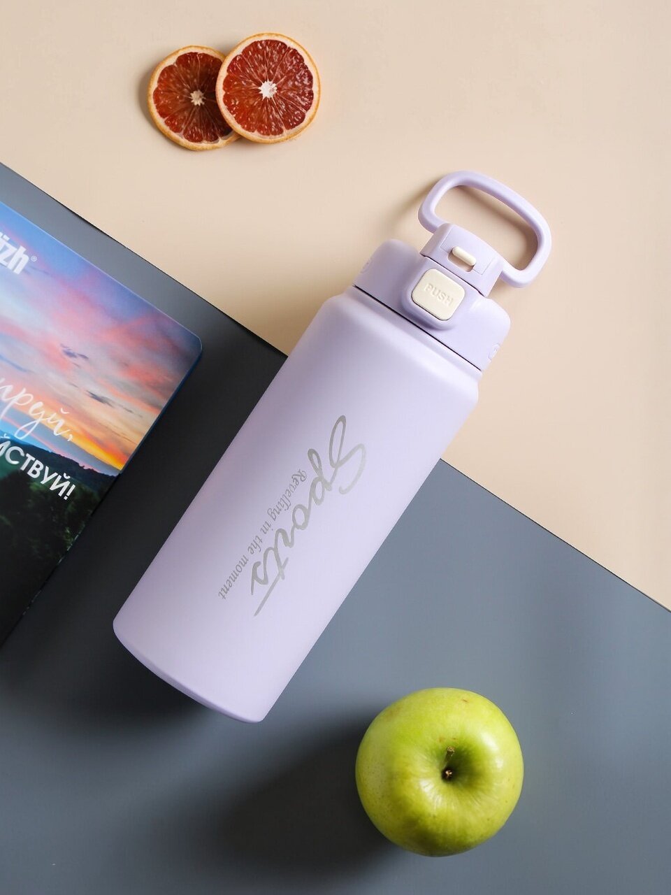 Термобутылка из нержавеющей стали 0.8 л сиреневая Y4-9298 — сохраняет температуру до 12 часов, идеальна для города, спорта, путешествий и подарка.