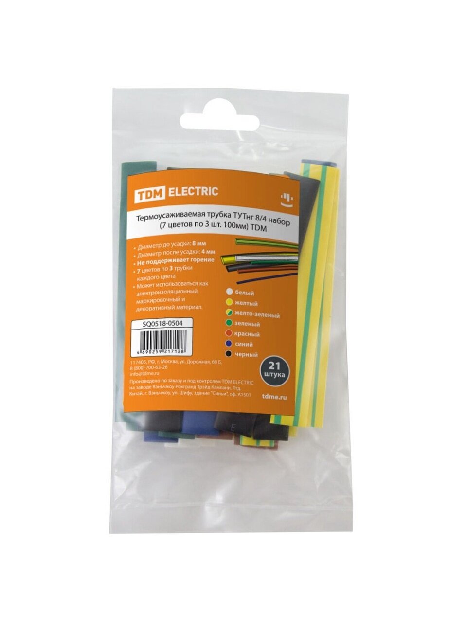Вы можете приобрести «Термоусадочная трубка 8/4 мм, 21 шт, набор, 7 цветов по 3 шт, 100 мм, TDM Electric, SQ0518-0504» и другие товары в нашем интернет-магазине в Астрахани по низким ценам и с бесплатным самовывозом.