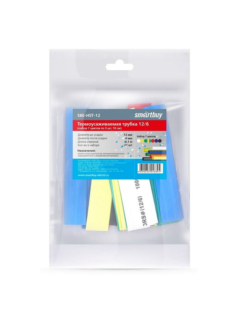 Вы можете приобрести «Термоусаживаемая трубка 12/6 мм, 21 шт, набор, 7 цветов по 3 шт, 100 мм, Smartbuy, SBE-HST-12» и другие товары в нашем интернет-магазине в Железногорске по низким ценам и с бесплатным самовывозом.