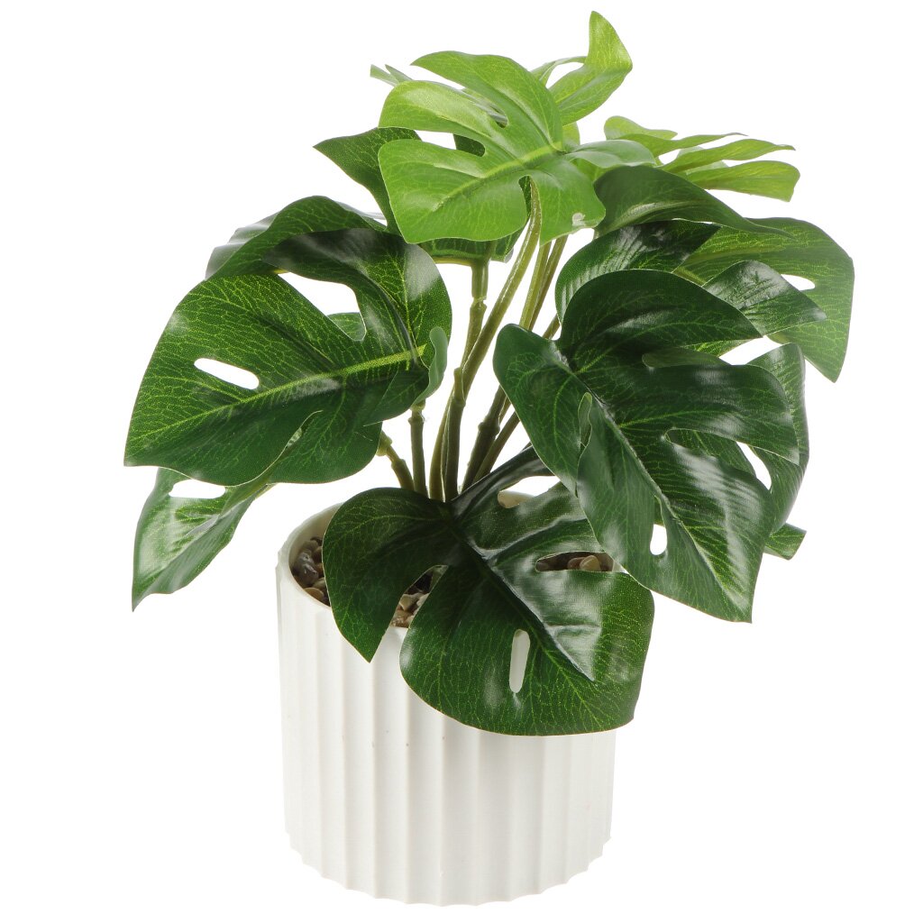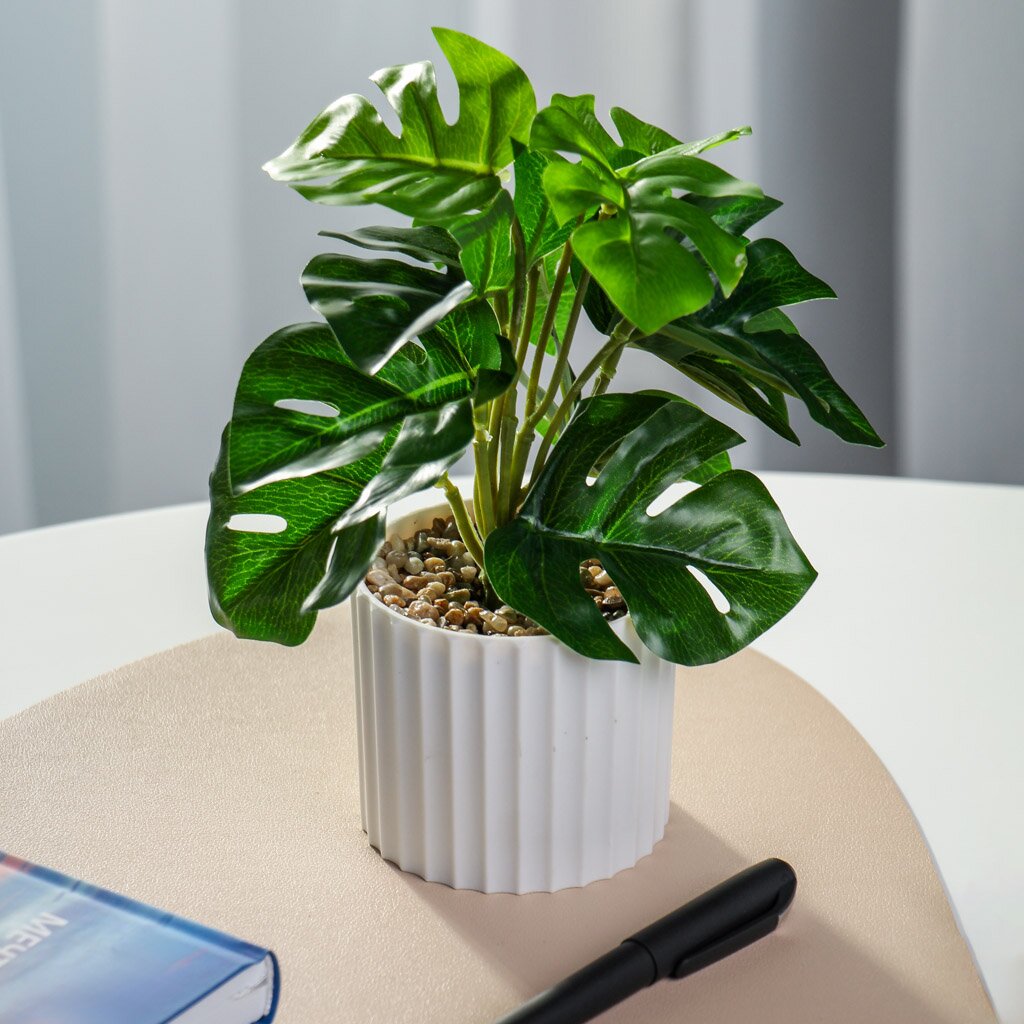 Искусственная монстера в кашпо 20х8 см: стильный декор для дома и офиса, не требует ухода, всегда свежий зелёный акцент по выгодной цене.