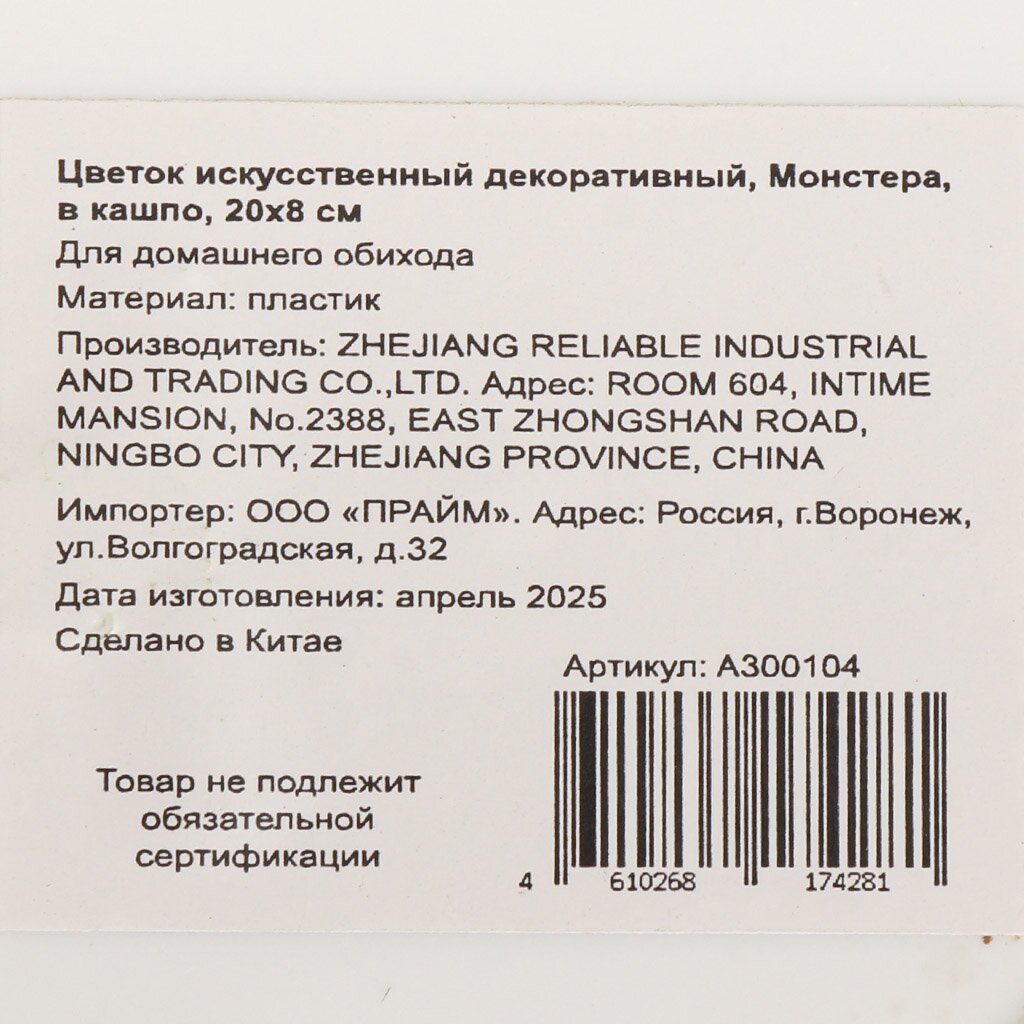 Вы можете приобрести «Цветок искусственный декоративный Монстера, в кашпо, 20х8 см, A300104» и другие товары в нашем интернет-магазине в Тамбове по низким ценам и с бесплатным самовывозом.