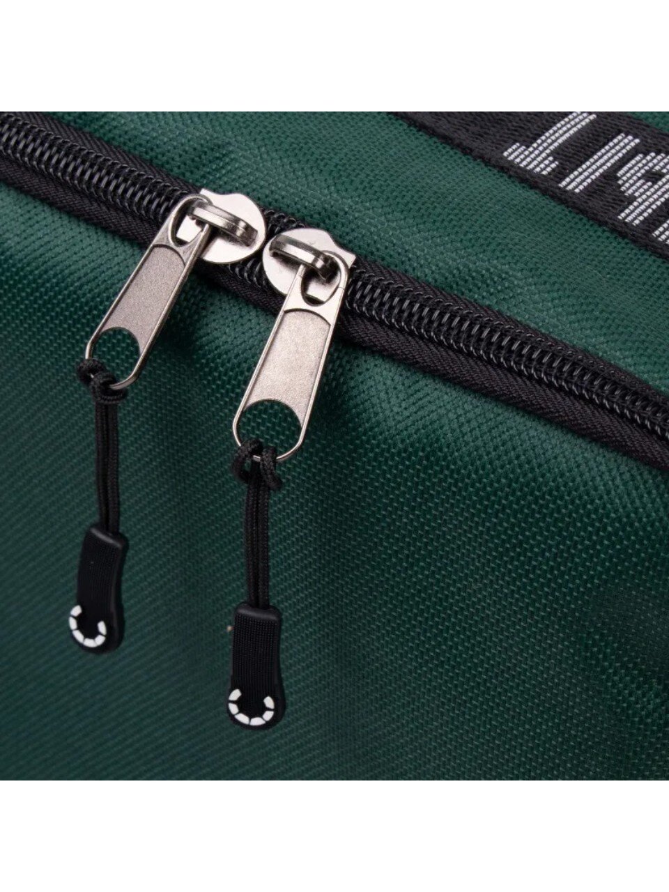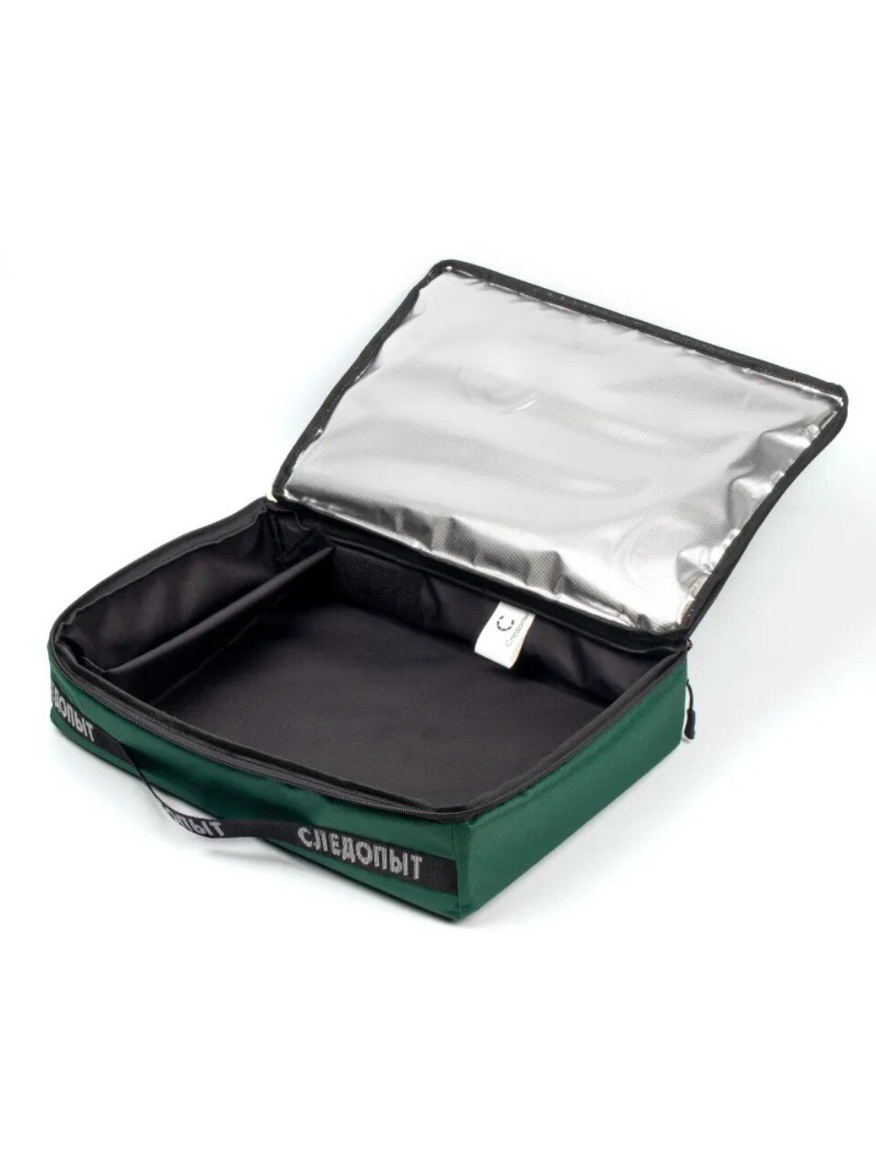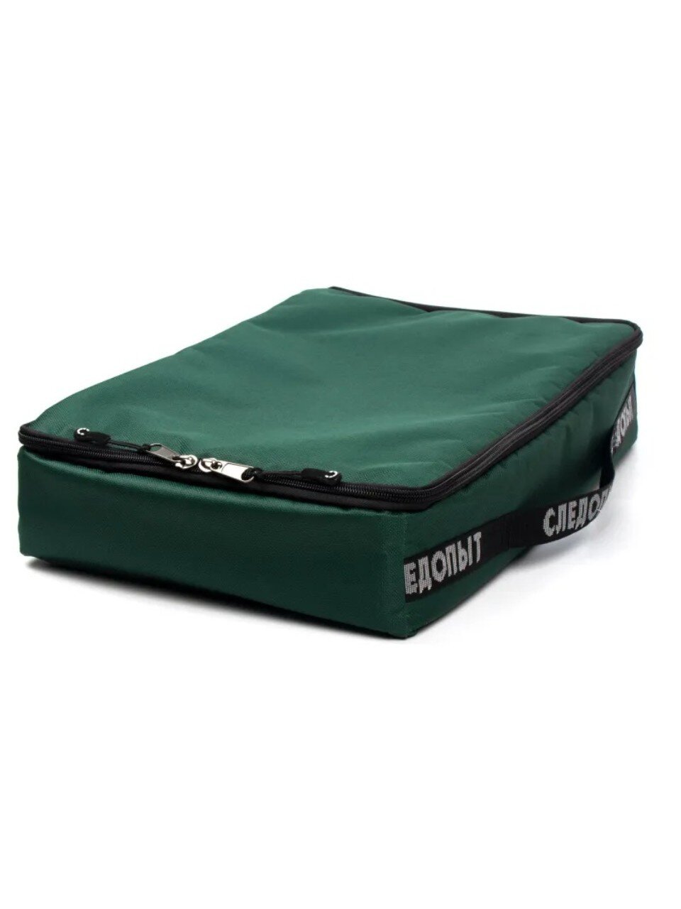 Размер изделия — 42х30х11 см, что подходит для большинства портативных плит и стандартных газовых баллонов. Материал — Oxford 600D, зелёный цвет.