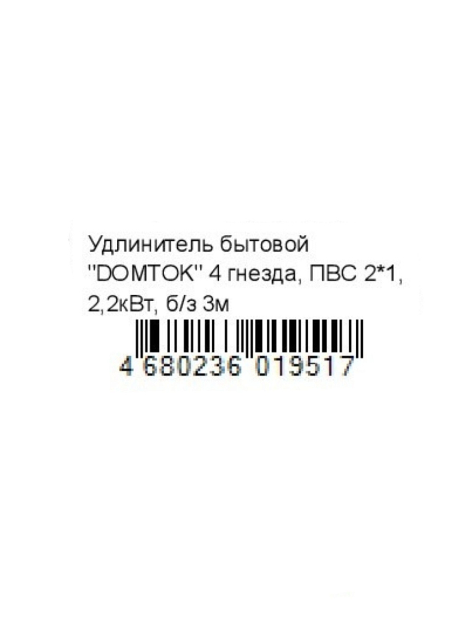 Удлинитель бытовой Domtok 2356 на 4 гнезда и 3 метра — оптимальное решение для дома и дачи: подключайте до 4 приборов, экономьте место и бюджет.