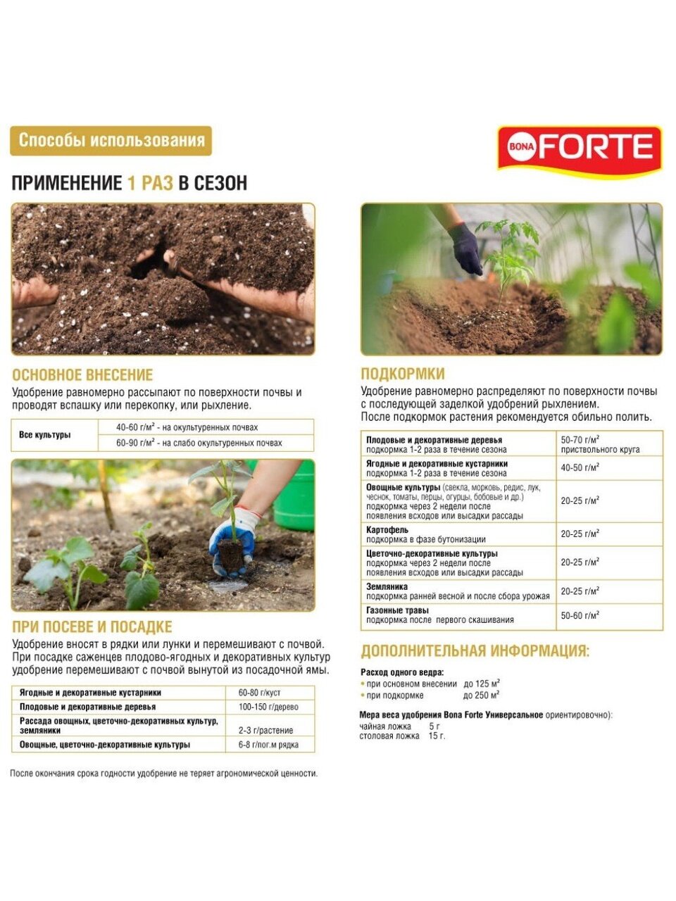 - при подготовке почвы весной удобрение равномерно рассыпают по поверхности почвы и проводят вспашку или рыхление