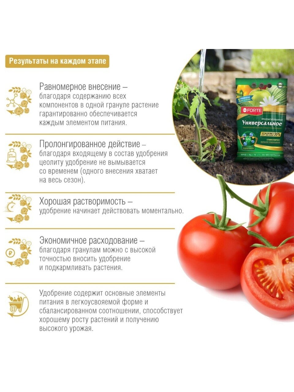 Удобрение гранулированное пролонгированное с биодоступным кремнием Bona Forte BF23010431 используется для стимуляции роста и повышения урожайности овощных культур, цветочно-декоративных, культур, плодовых деревьев и ягодных кустарников.