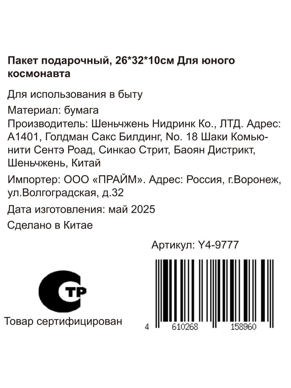 Вы можете приобрести «Пакет подарочный бумага, 32х10х26 см, Для юного космонавта, Y4-9777» и другие товары в нашем интернет-магазине в Старом Осколе по низким ценам и с бесплатным самовывозом.