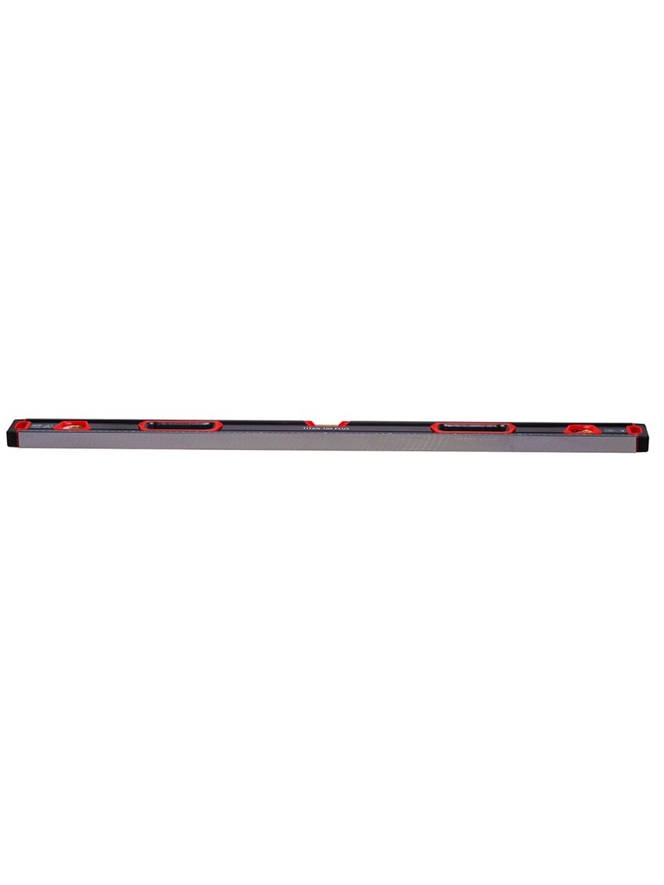 Линейка в миллиметрах. Вдоль рабочей поверхности на обеих сторонах нанесена линейная оцифровка в миллиметрах. Два инструмента в одном: уровень и рулетка.